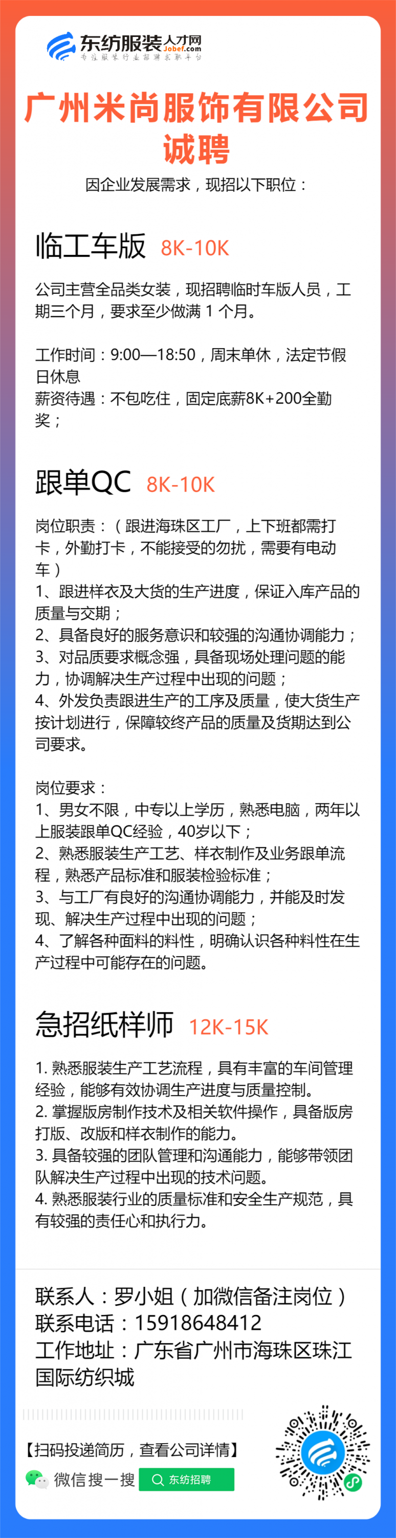 急招纸样师04-18