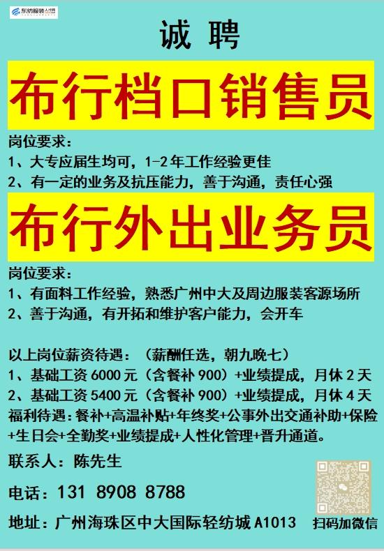 •  联系时,请一定说明在东纺服装人才网看到的,谢谢!见面最安全,发现问题请举报。