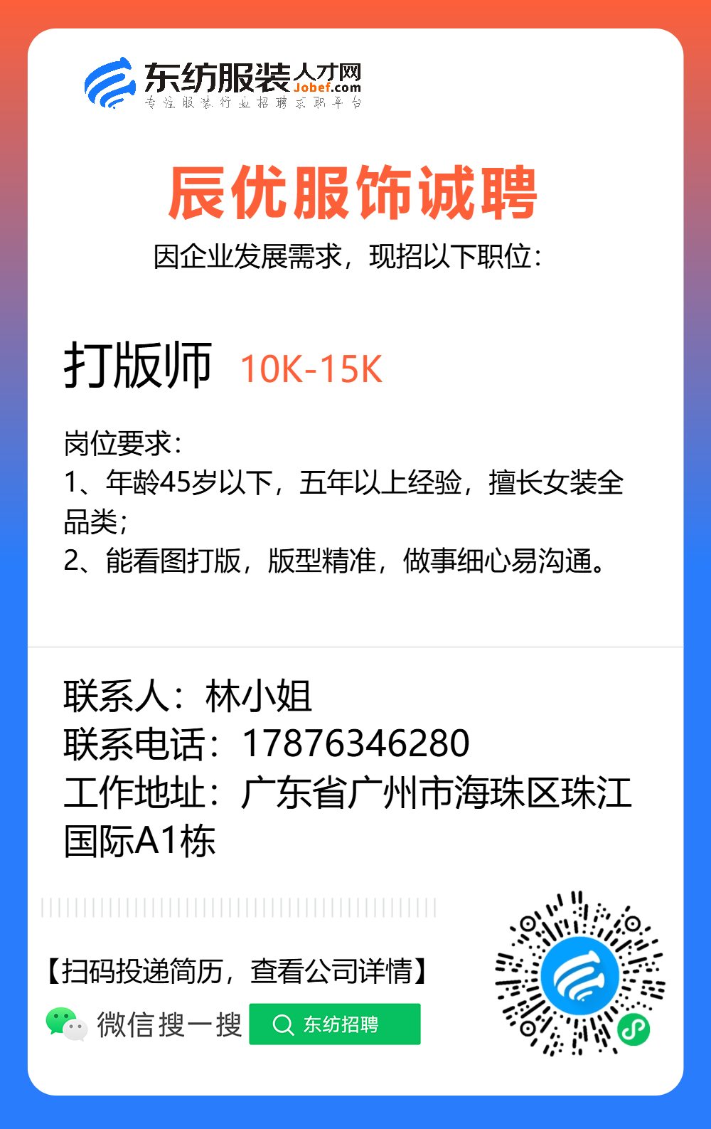 注:应聘或发邮件联系时,请注明该招聘信息来源于 东纺服装人才网www.jobef.com 谢谢!