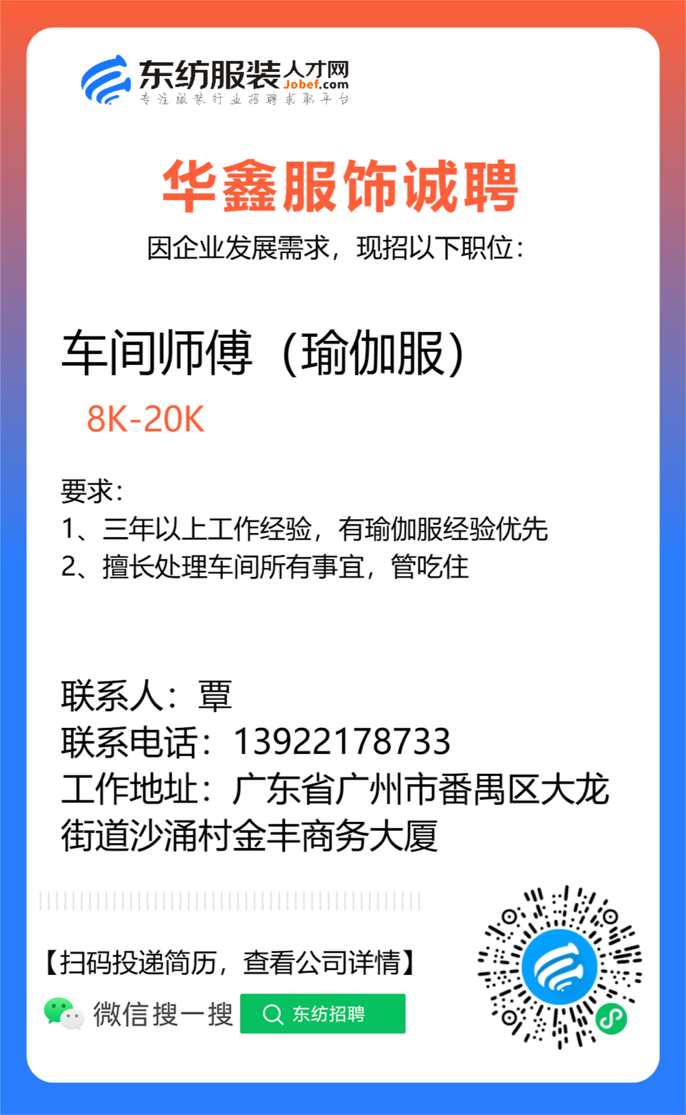 •  联系时,请一定说明在东纺服装人才网看到的,谢谢!见面最安全,发现问题请举报。
