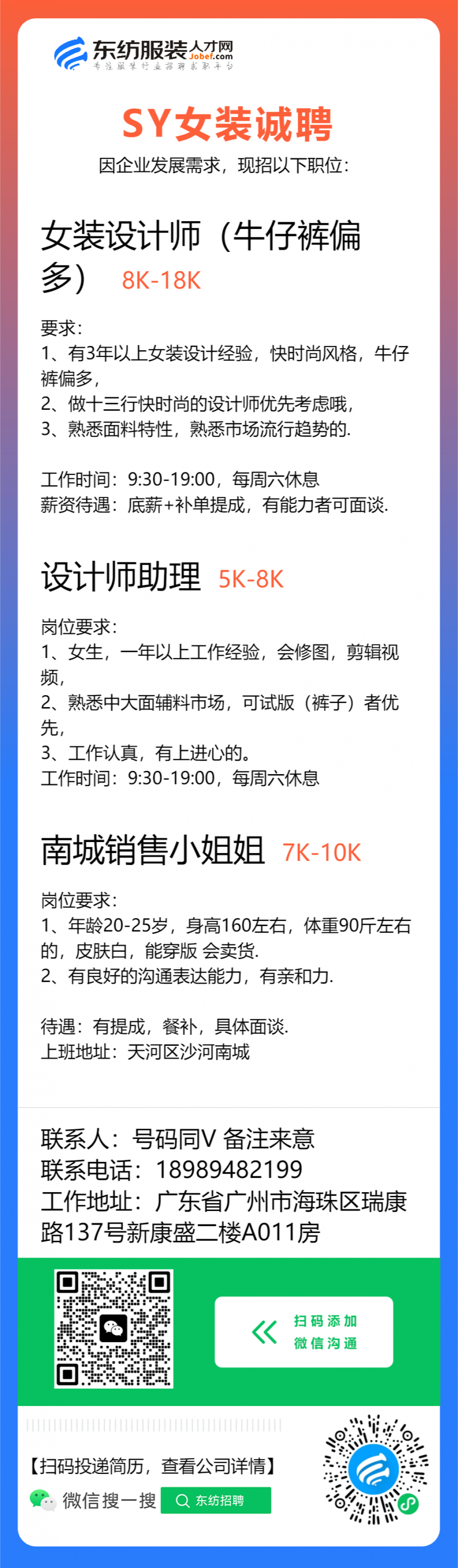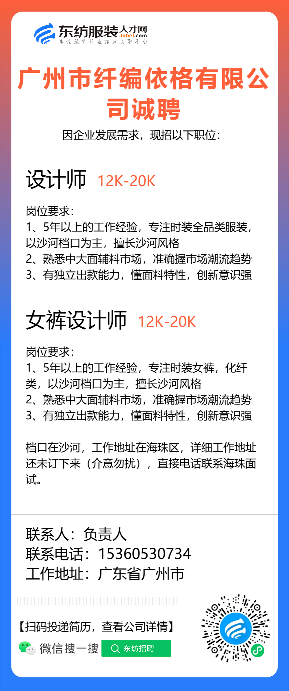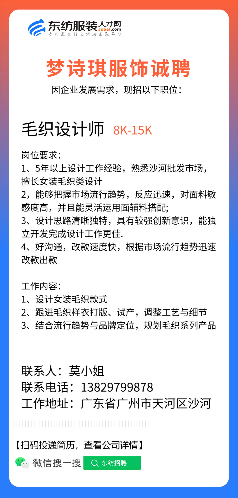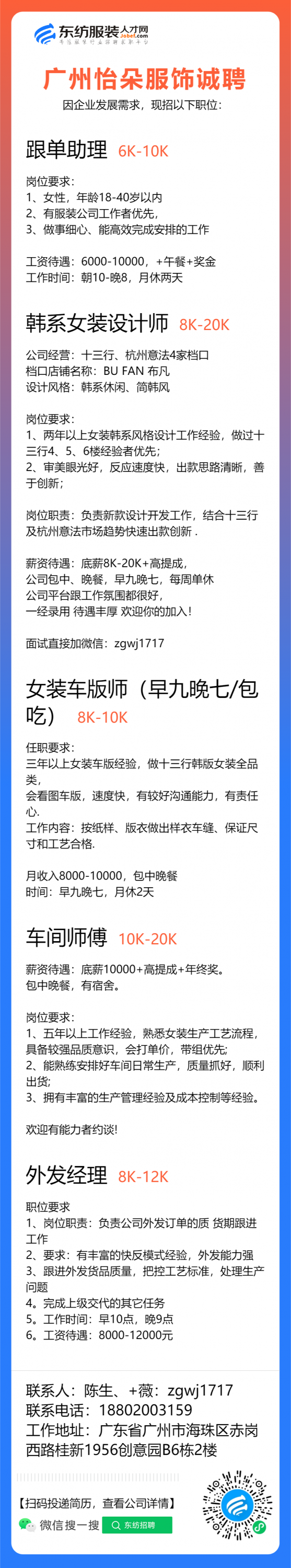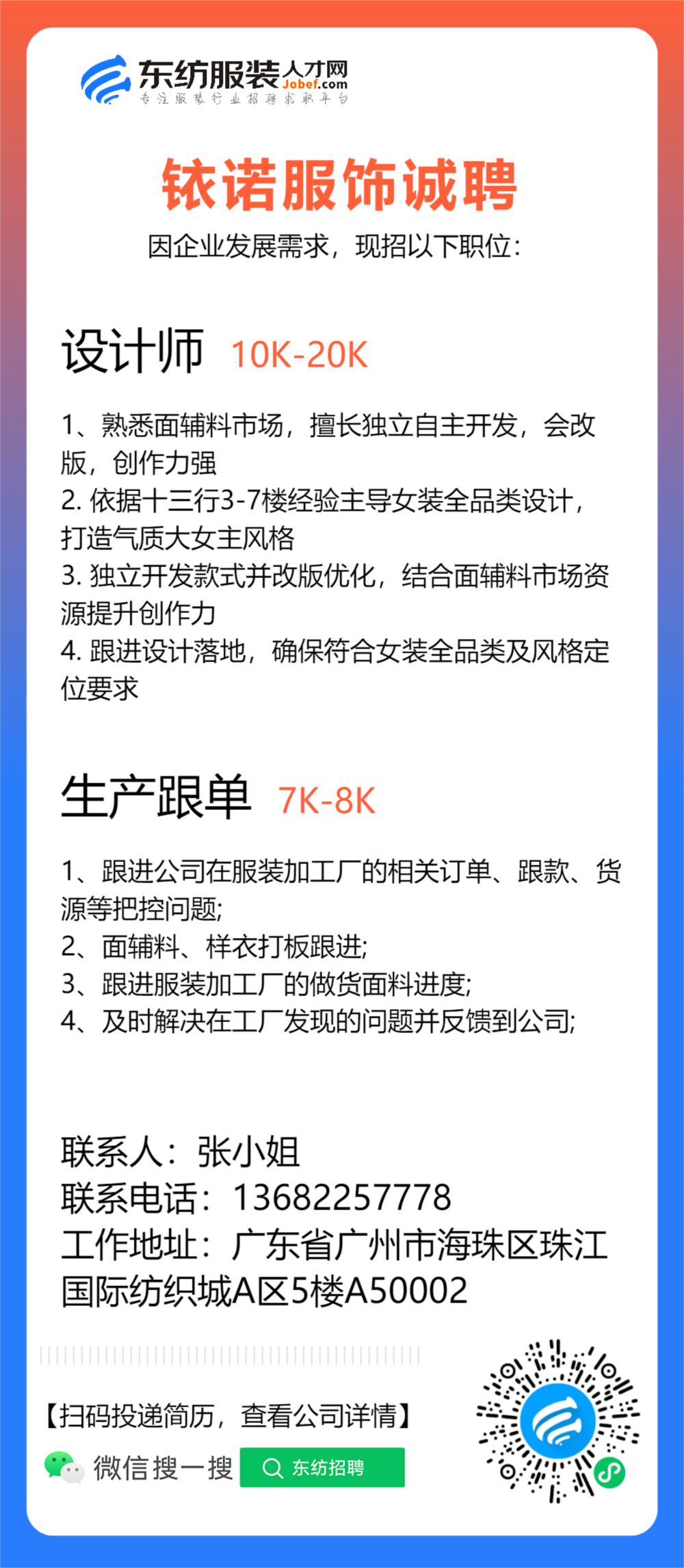 服装设计师/女装设计师/车版师/样衣工/跟单助理/销售/业务员/外贸跟单/采购助理/纸样师/打版师/QC质检/生产跟单/采购/采购主管/外贸业务员//电商运营/跟单文员/外贸销售跟单