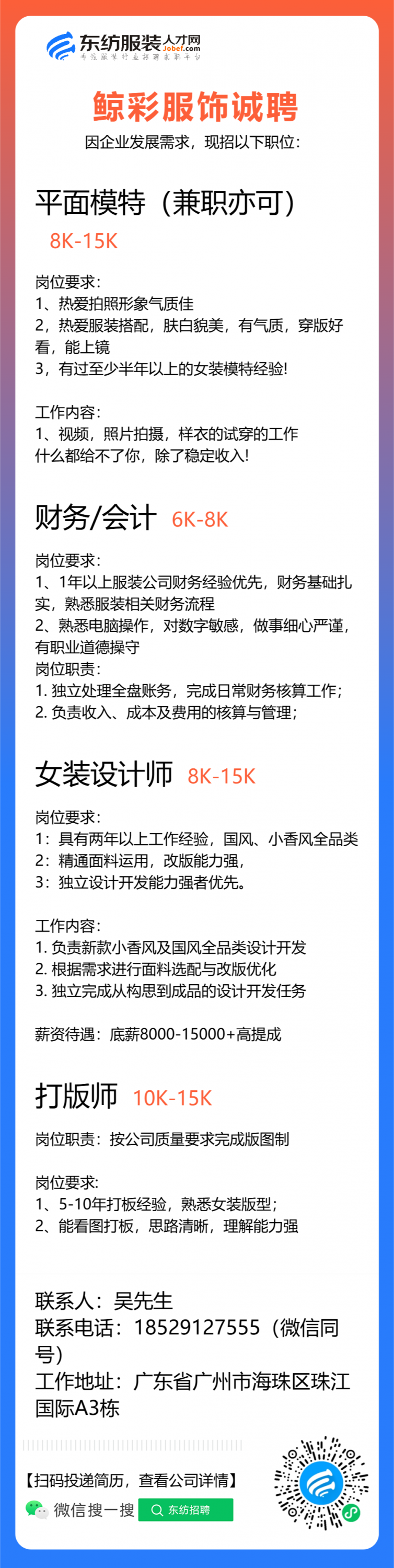 服装设计师/首席设计师/主设计师/设计总监/设计助理/女装设计师/纸样师/打版师/车版师/样衣工/车版衣/财务/会计/财务文员