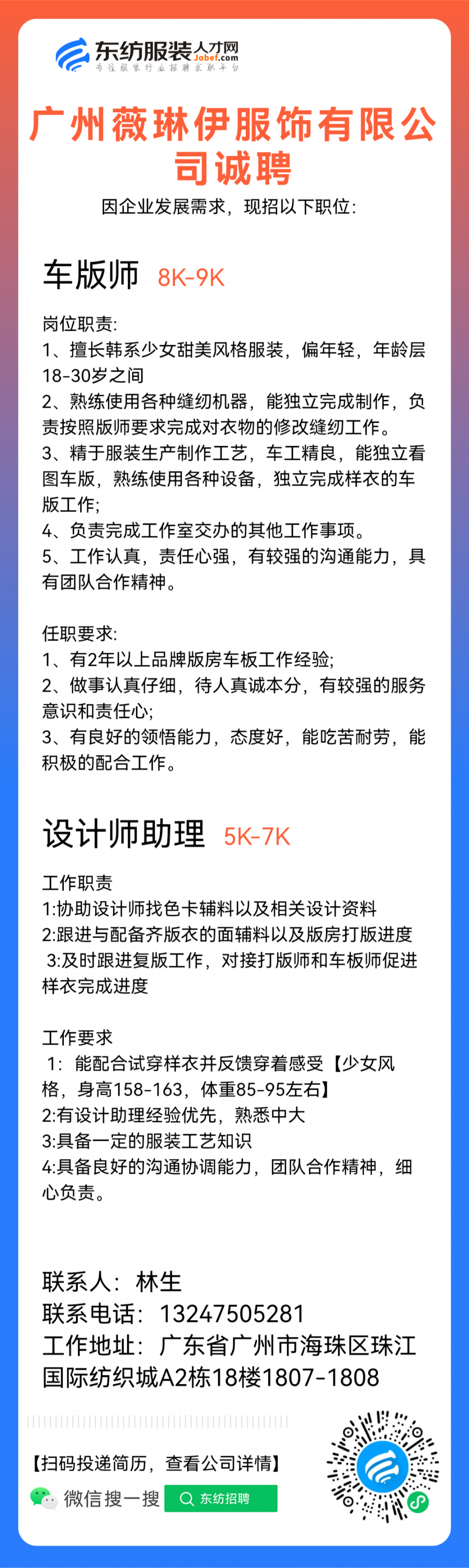车位/车工/车间组长/车间主管/生产计划/指导工/生产经理/生产厂长/主管/生产总监/设计助理/纸样师/打版师/车版师/样衣工/行政文员/行政专员/助理/生产助理/文员/机修工/打边/专机