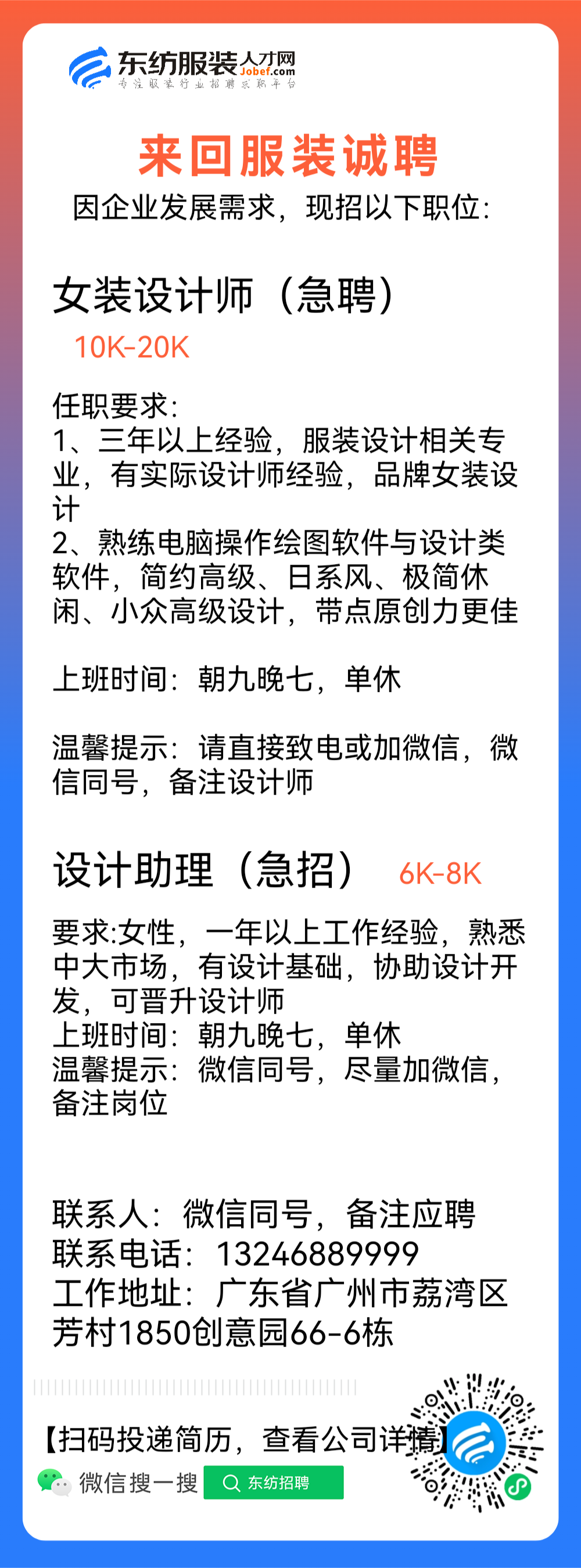 女装设计师/设计助理/服装设计师