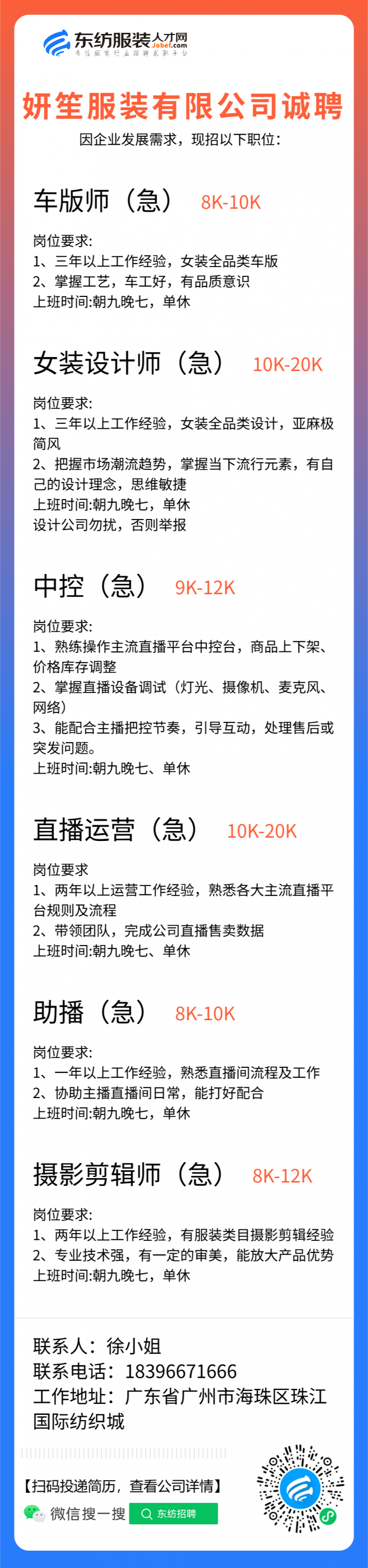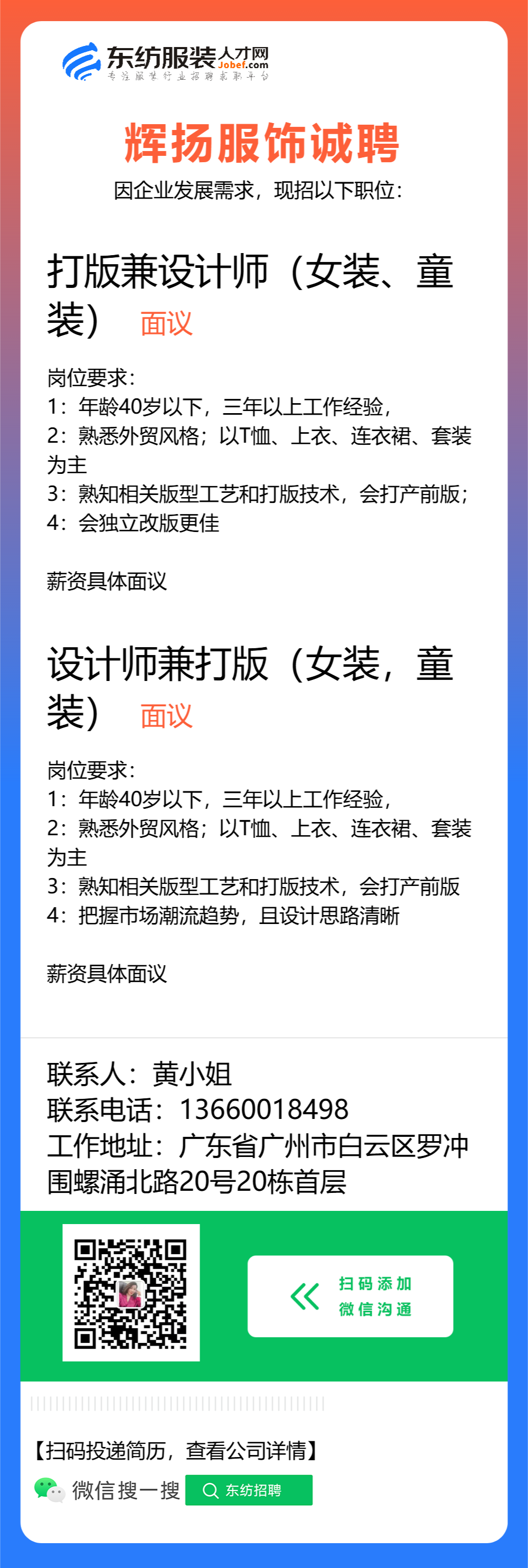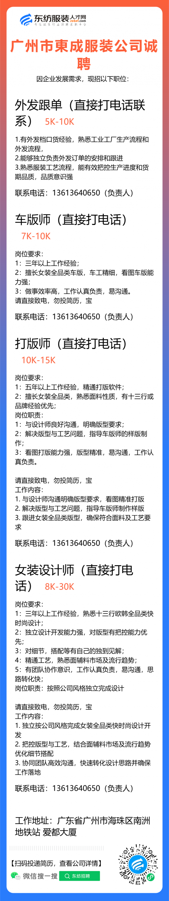 服装设计师/女装设计师/车版师/样衣工/跟单助理/销售/业务员/外贸跟单/采购助理/纸样师/打版师/QC质检/生产跟单/采购/采购主管/外贸业务员//电商运营/跟单文员/外贸销售跟单