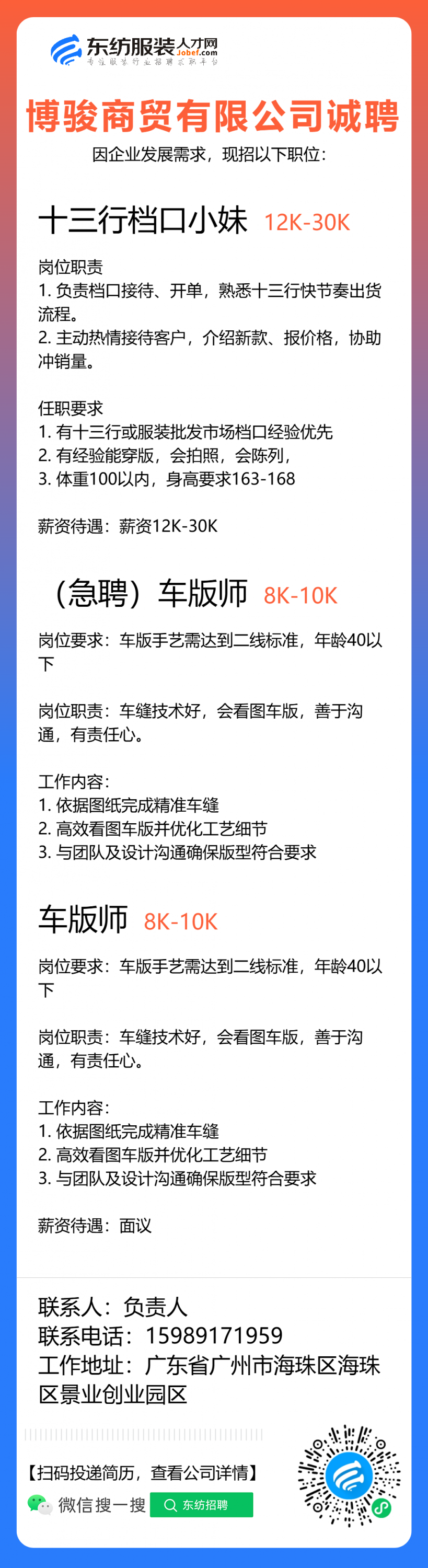 车版师/样衣工/纸样师/打版师/车版主管/组长/生产厂长/主管/车间主管/车位/车工/裁床/查货/中查/尾查/尾部主管/大烫/中烫/小烫/运营助理/行政专员/助理/行政文员/平车/冚车//四线/四车