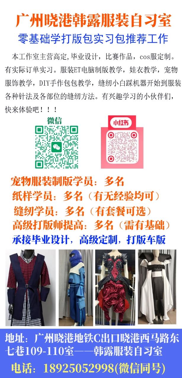地址:晓港地铁C出口晓港西马路东七巷109-110室--韩露服装自习室