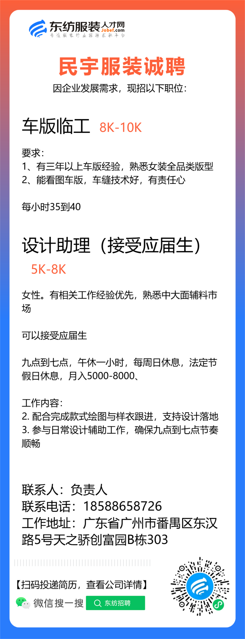 服装设计师/首席设计师/主设计师/设计总监/女装设计师/车版师/样衣工/车版衣/运营助理/电商运营/网络推广/纸样师/打版师/生产跟单/跟单助理