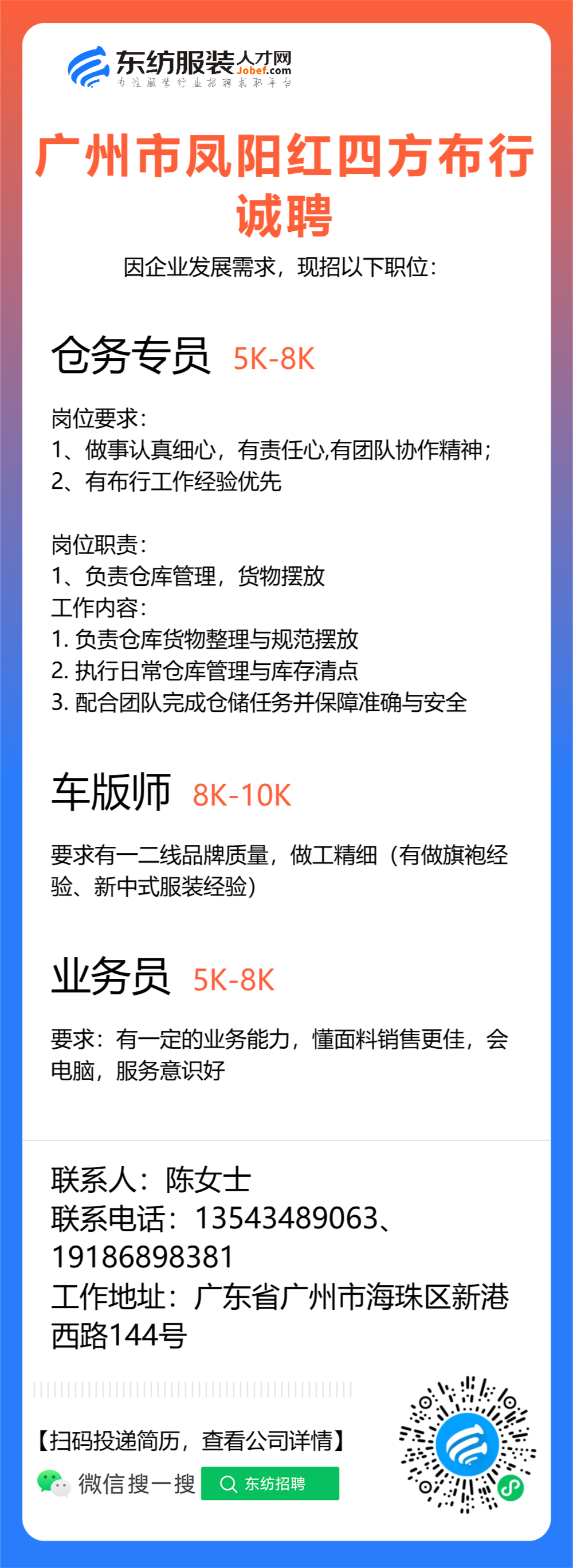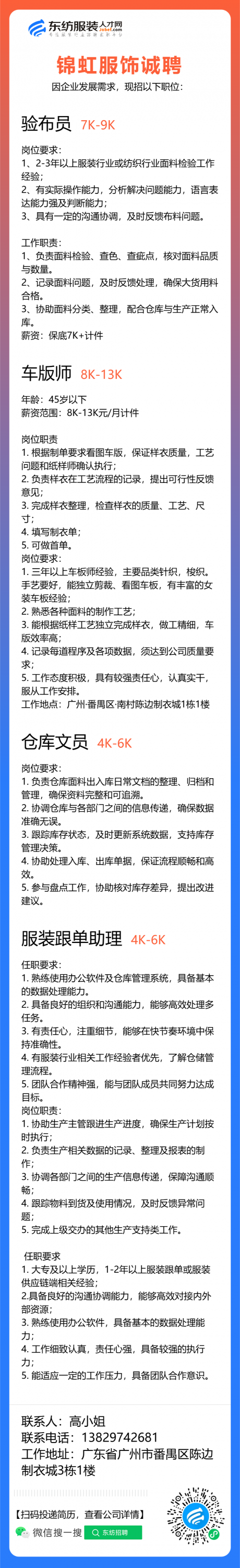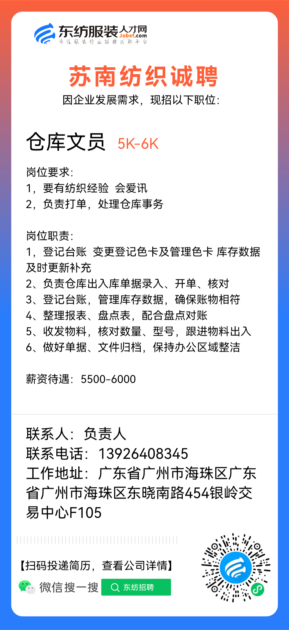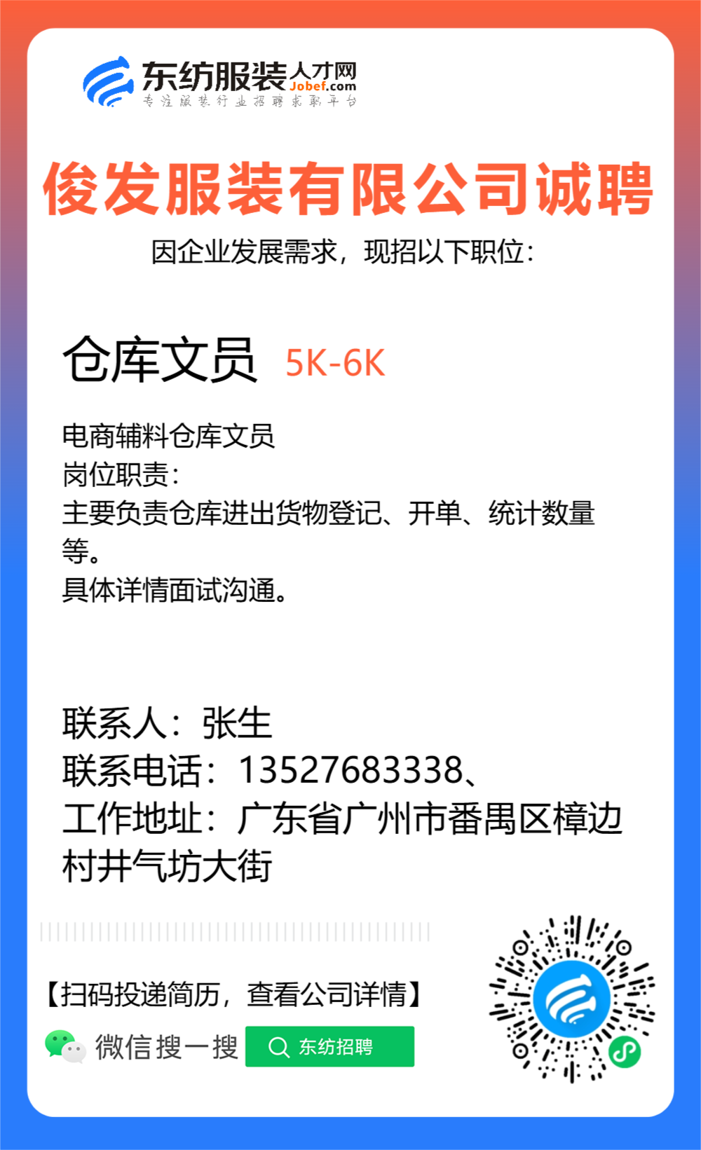 生产跟单/跟单文员/仓库文员/仓库专员/接待/前台/销售/业务员/销售助理/导购/营业员/营业员/销售员/开单文员/人事专员/库管员/收货/拿货专员/面料检验/验布员/面辅料研发/开发/普工