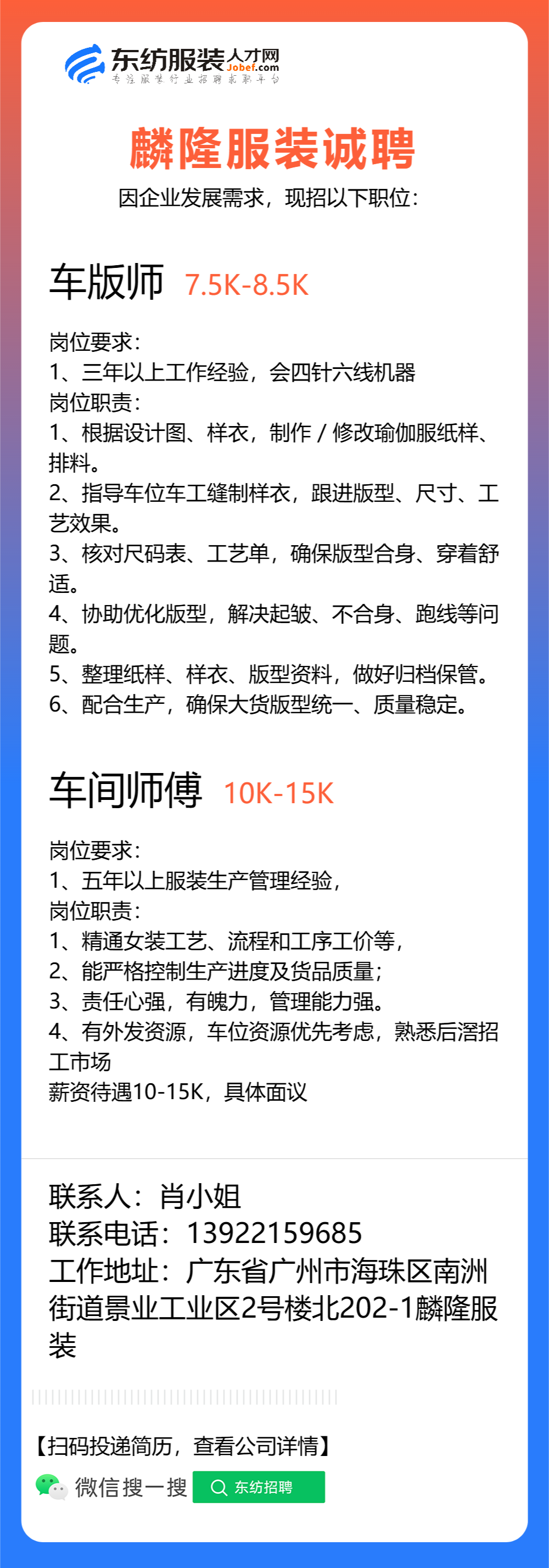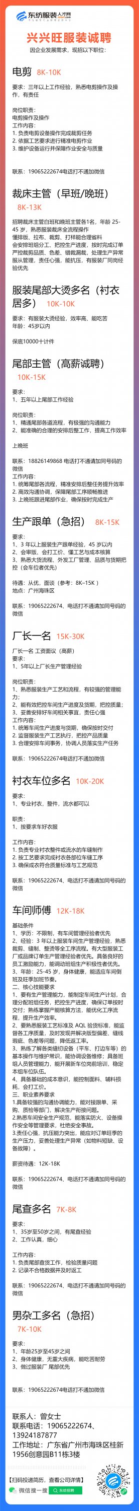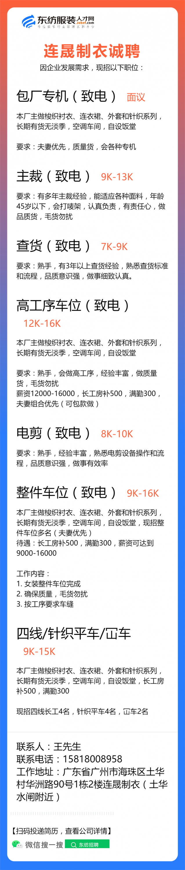 车间主管/车间组长/指导工/车位/车工/生产跟单/查货/大烫/中烫/小烫/尾部主管/裁床/外发主管/生产助理/文员/跟单文员/办公室文员/普工/杂工/冚车/四线/副裁/电剪/平车/跟单助理//专机