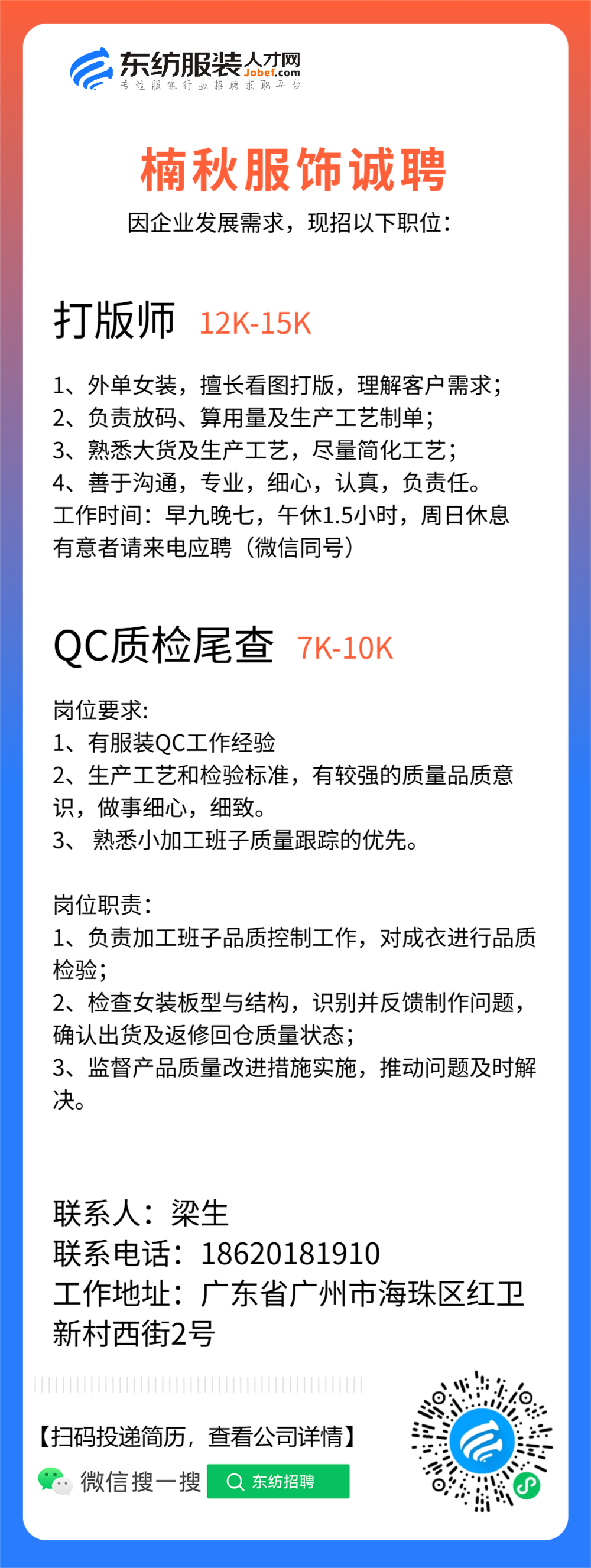 纸样师/打版师/生产厂长/主管/车间主管/车间组长/裁床/查货/车位/车工/中查/尾查/指导工/收发/生产跟单/尾部主管/生产助理/文员/副裁/电剪/QC质检/杂工/经理助理