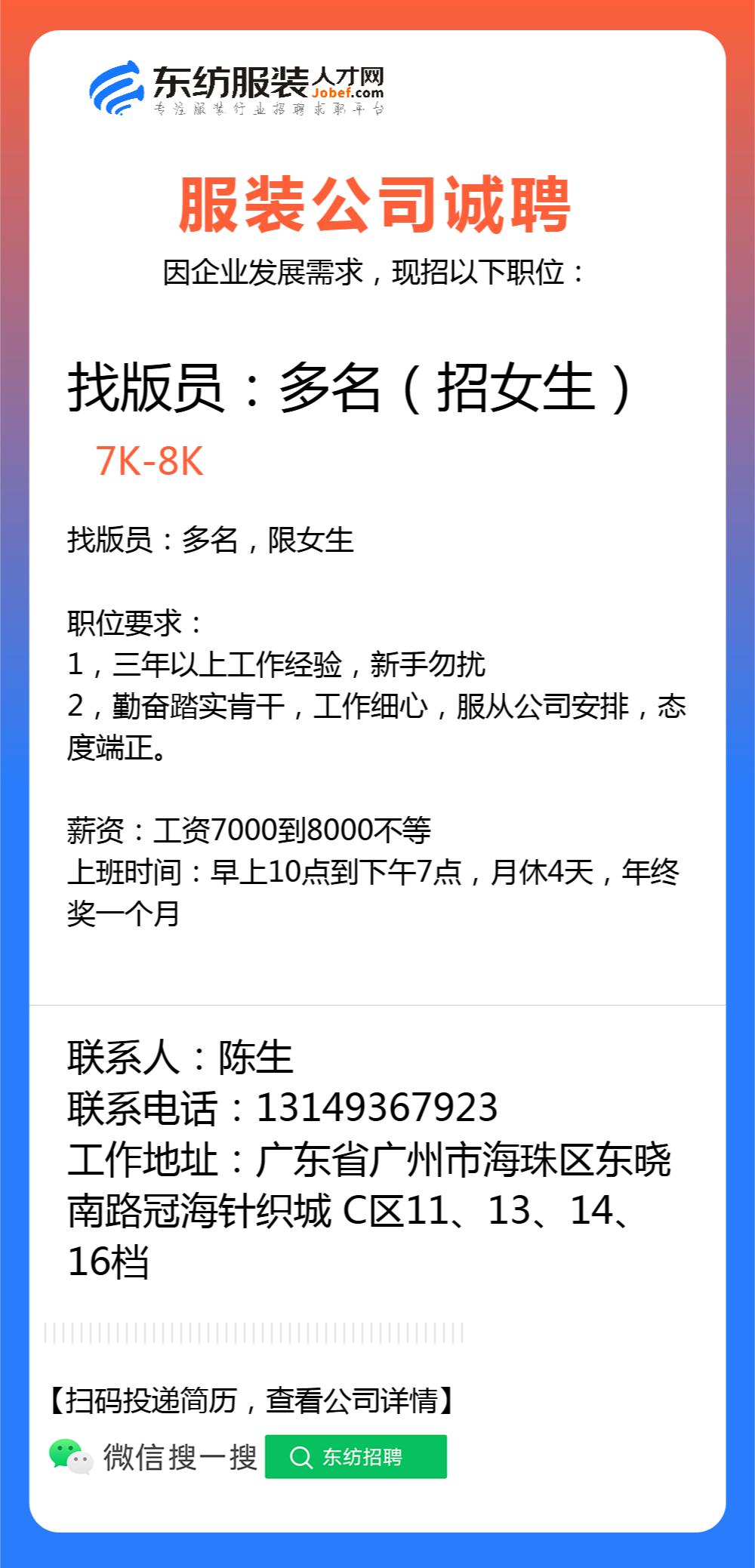 服装设计师/女装设计师/车版师/样衣工/跟单助理/销售/业务员/外贸跟单/采购助理/纸样师/打版师/QC质检/生产跟单/采购/采购主管/外贸业务员//电商运营/跟单文员/外贸销售跟单