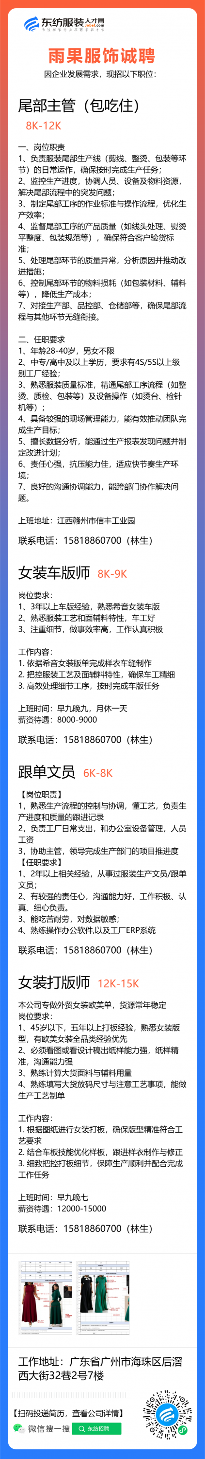 服装设计师/女装设计师/车版师/样衣工/跟单助理/销售/业务员/外贸跟单/采购助理/纸样师/打版师/QC质检/生产跟单/采购/采购主管/外贸业务员//电商运营/跟单文员/外贸销售跟单