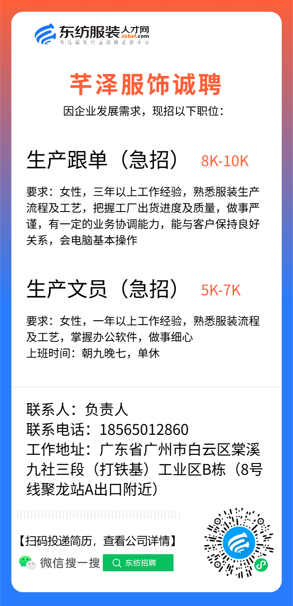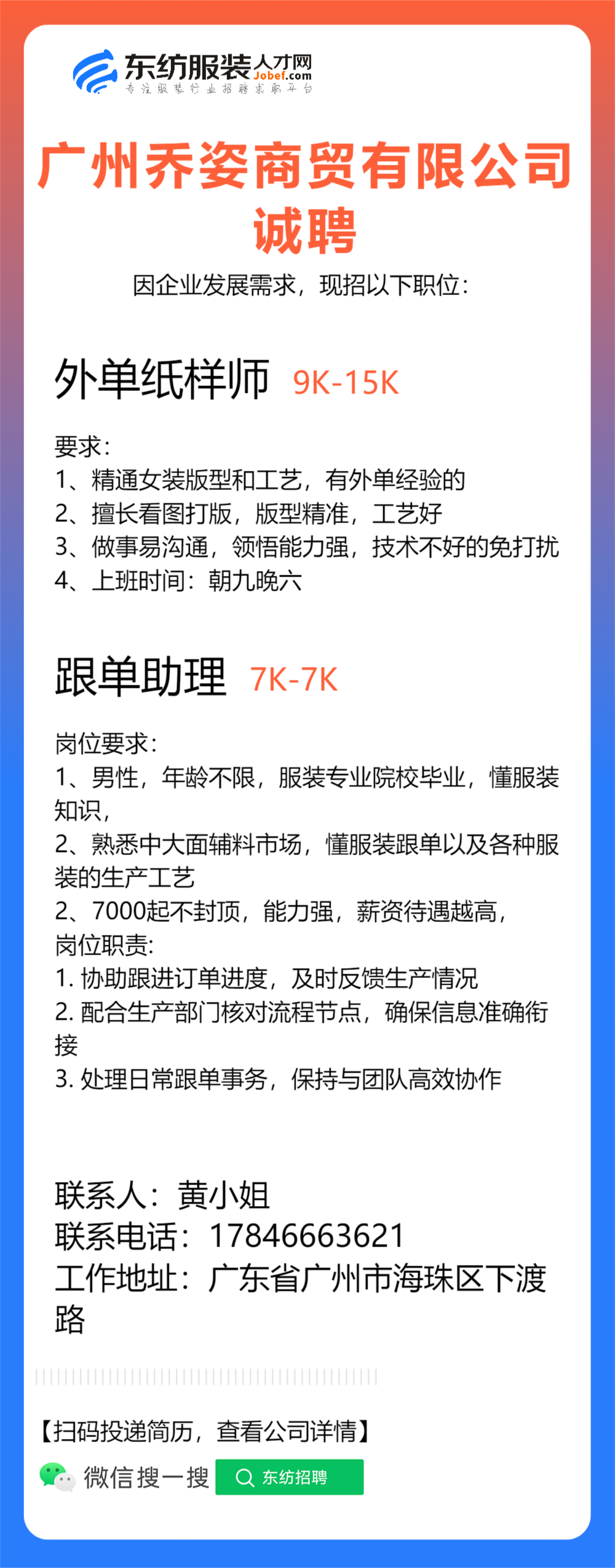 服装设计师/女装设计师/车版师/样衣工/跟单助理/销售/业务员/外贸跟单/采购助理/纸样师/打版师/QC质检/生产跟单/采购/采购主管/外贸业务员//电商运营/跟单文员/外贸销售跟单