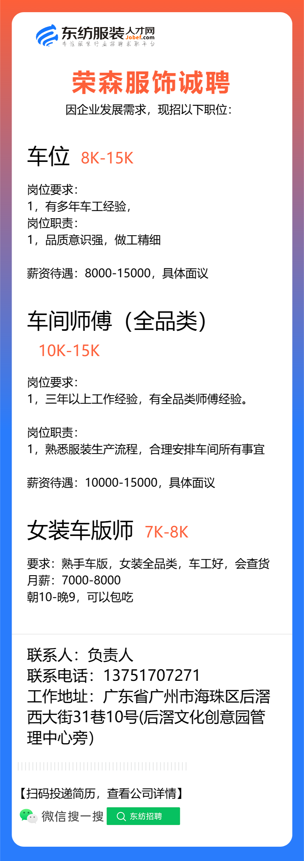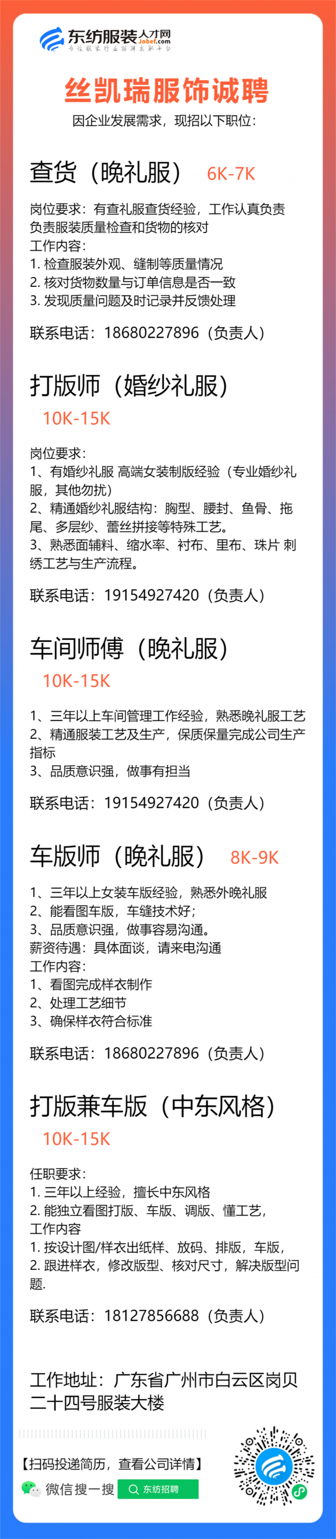 服装设计师/首席设计师/主设计师/设计总监/设计助理/女装设计师/纸样师/打版师/打版兼车版/版房主管/生产厂长/主管/车间组长/车间主管/生产经理/生产总监
