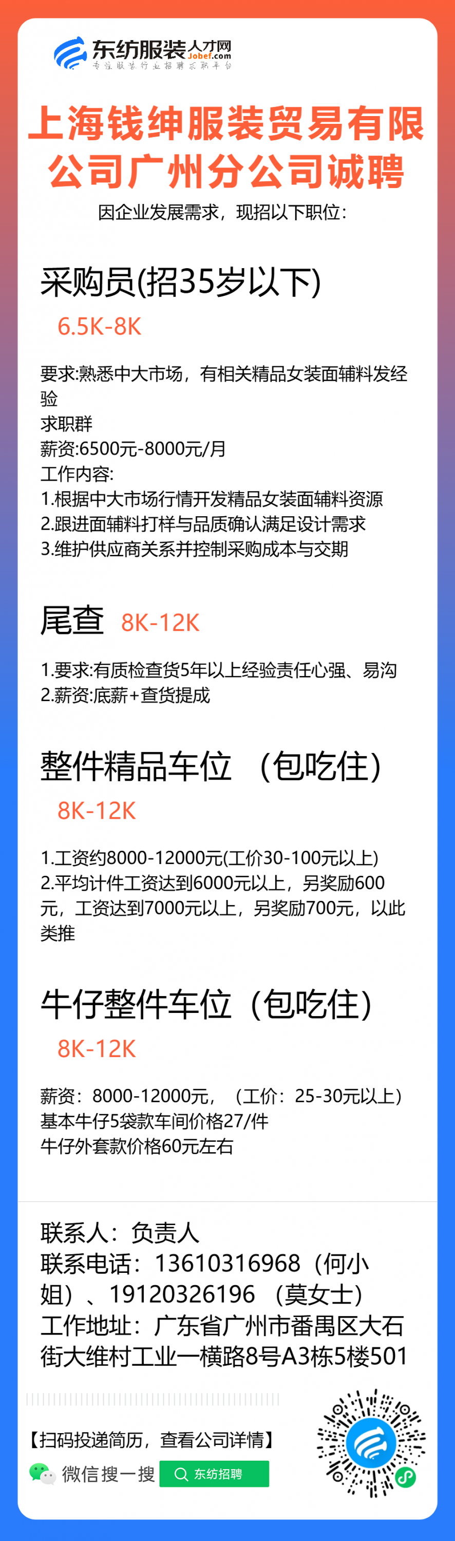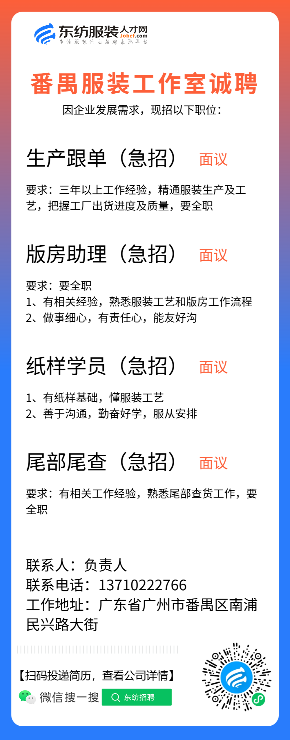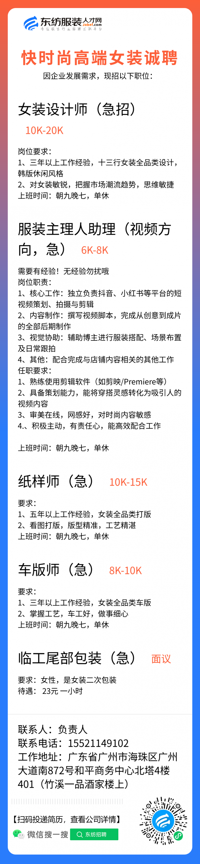 老板助理/女装设计师/服装设计师/首席设计师/主设计师/车版师/样衣工/临工尾部专员/仓库专员/纸样师/打版师