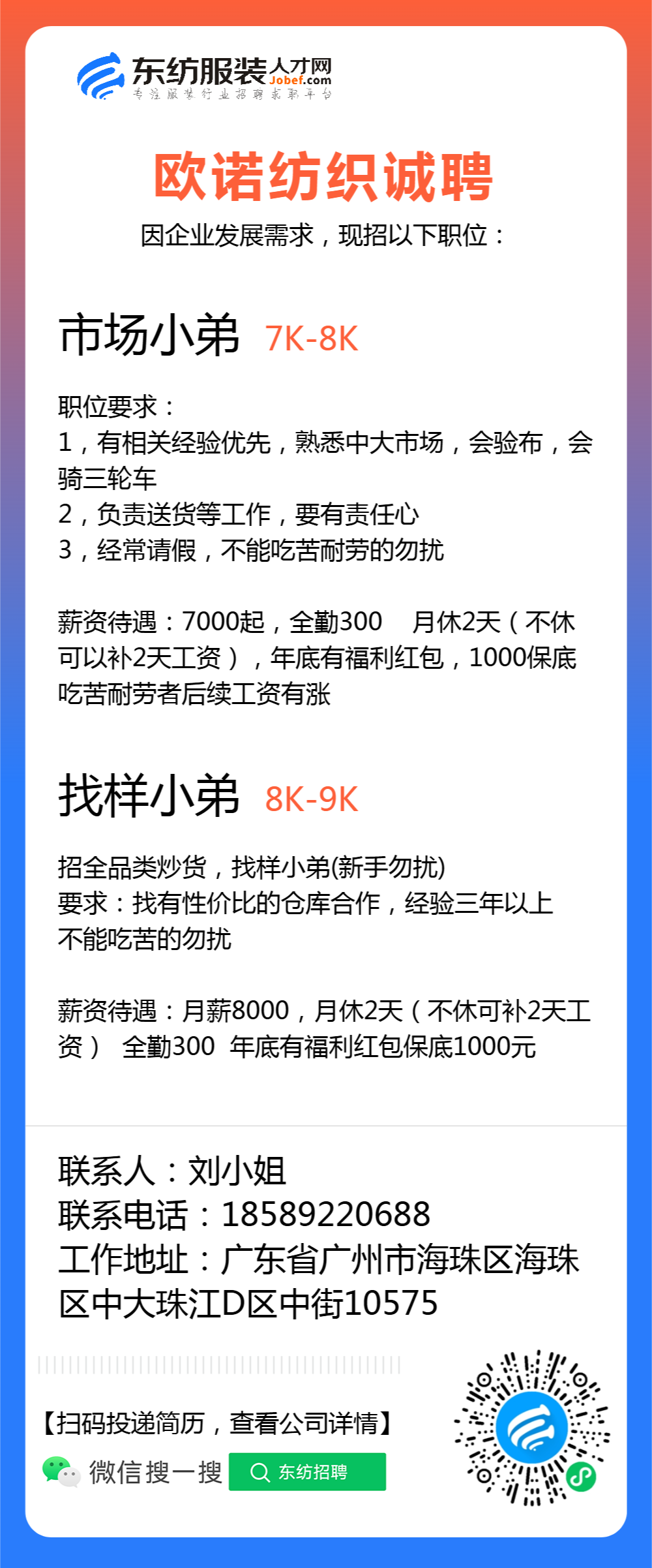 生产跟单/跟单文员/仓库文员/仓库专员/接待/前台/销售/业务员/销售助理/导购/营业员/营业员/销售员/开单文员/人事专员/库管员/收货/拿货专员/面料检验/验布员/面辅料研发/开发/普工