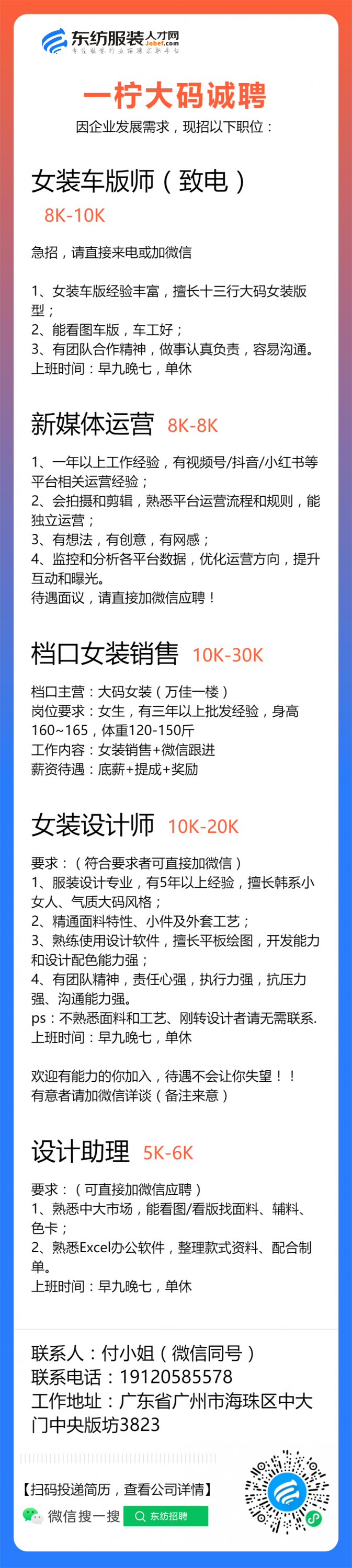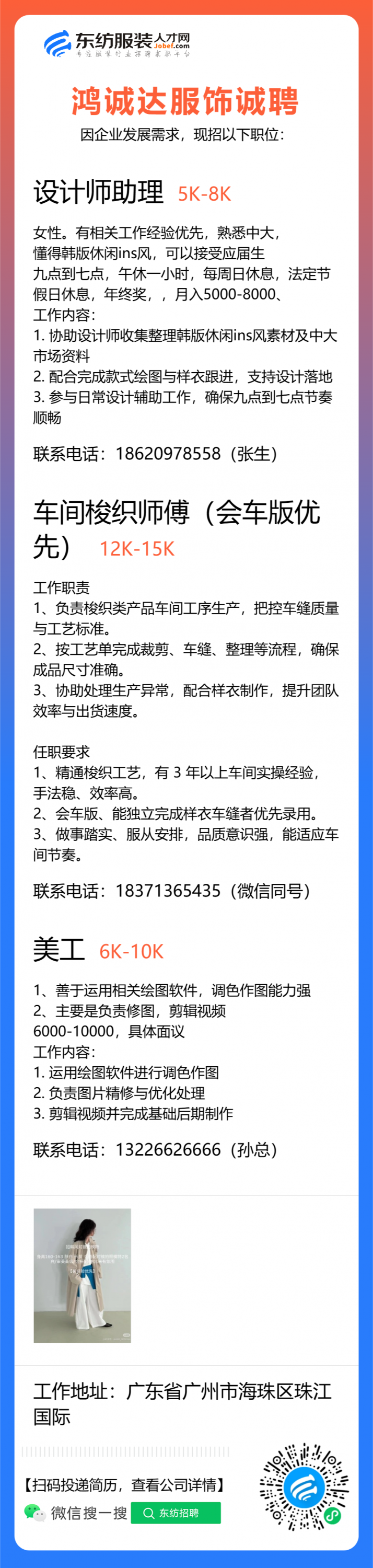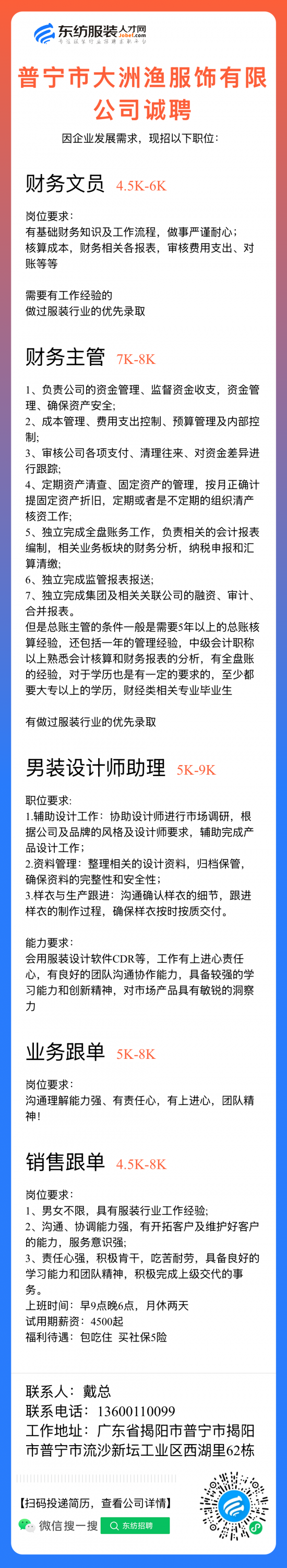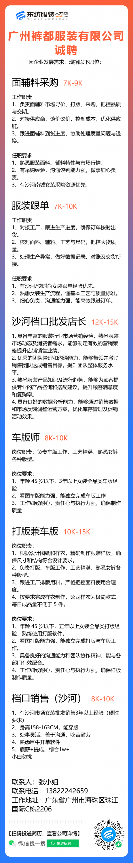 服装设计师/女装设计师/车版师/样衣工/跟单助理/销售/业务员/外贸跟单/采购助理/纸样师/打版师/QC质检/生产跟单/采购/采购主管/外贸业务员//电商运营/跟单文员/外贸销售跟单