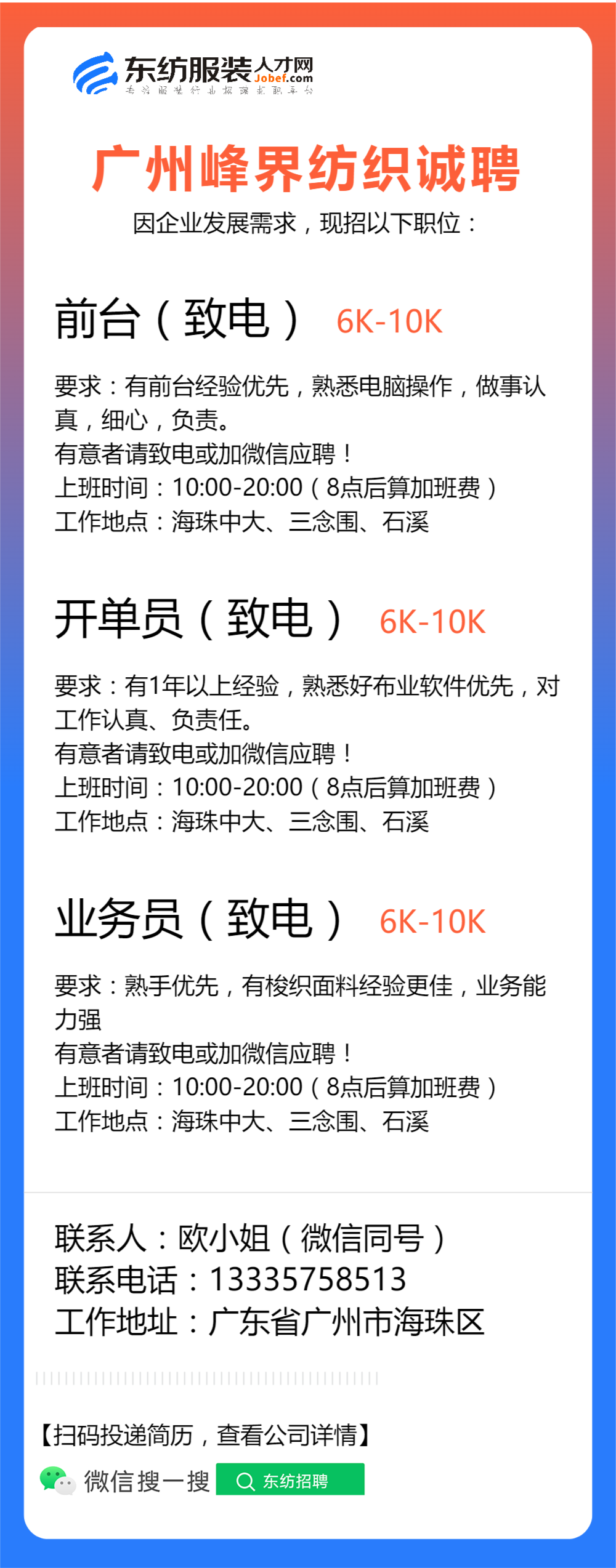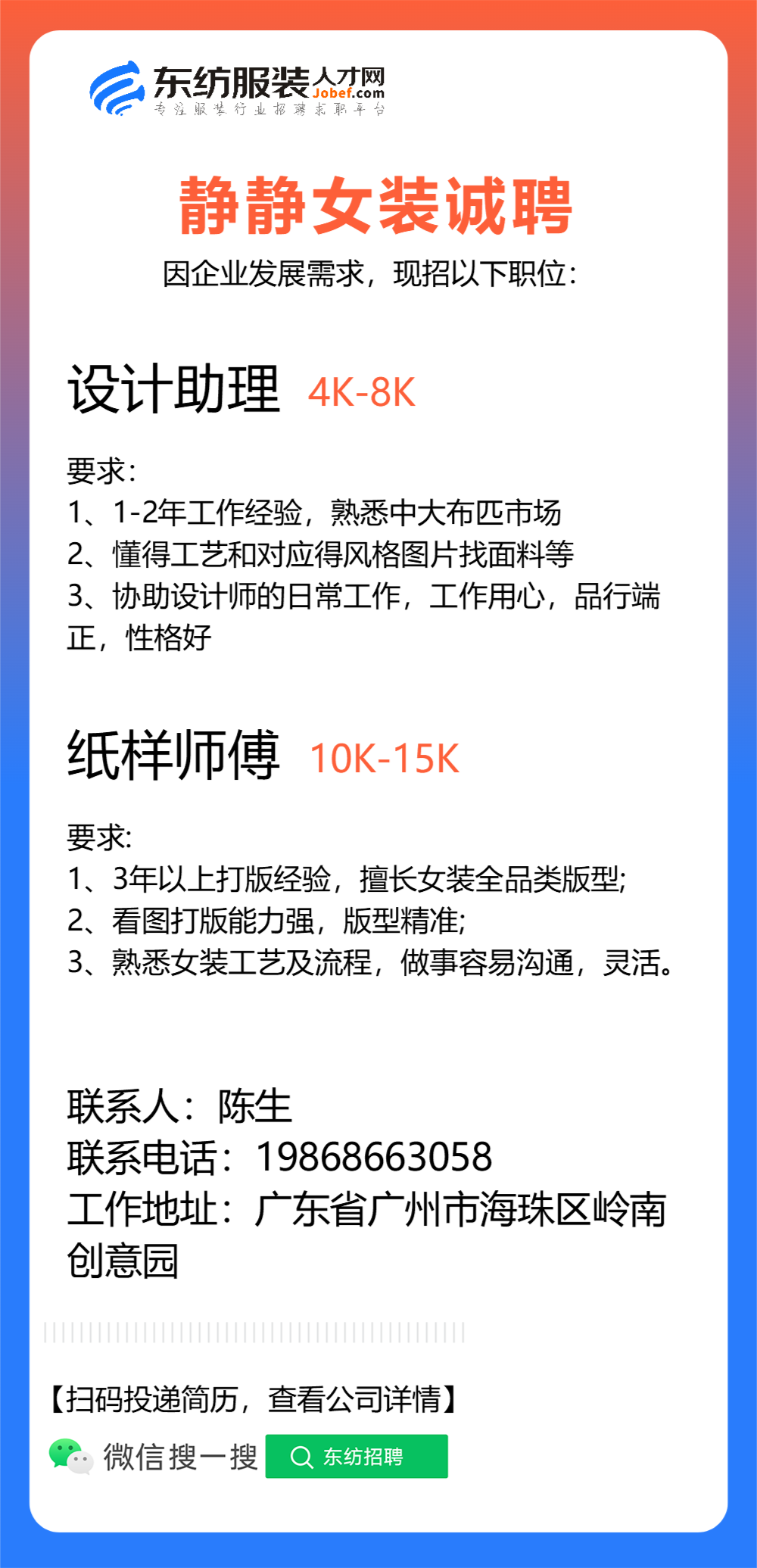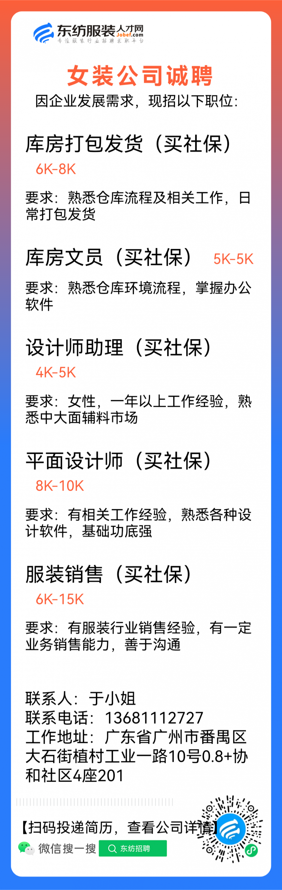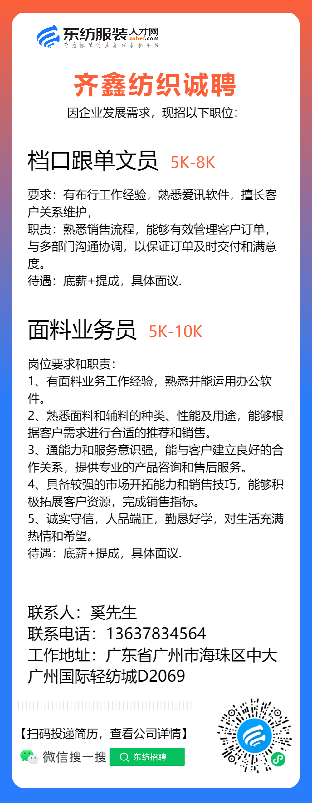 服装设计师/女装设计师/车版师/样衣工/跟单助理/销售/业务员/外贸跟单/采购助理/纸样师/打版师/QC质检/生产跟单/采购/采购主管/外贸业务员//电商运营/跟单文员/外贸销售跟单