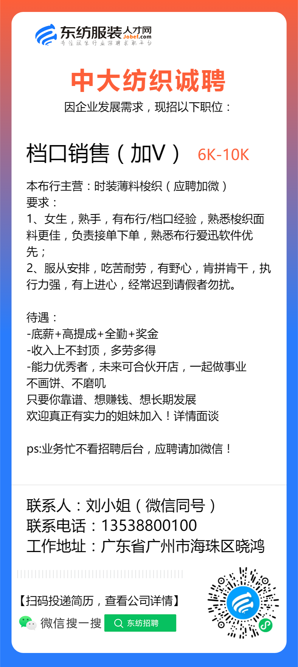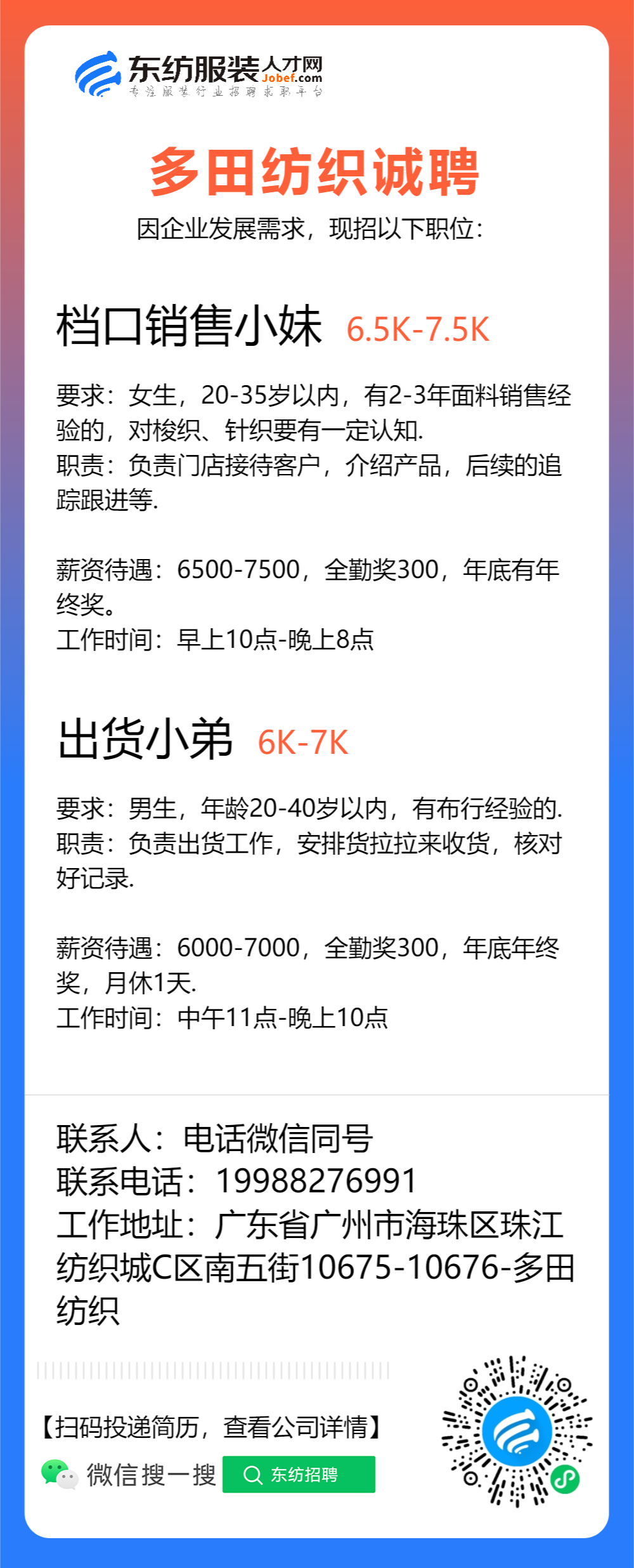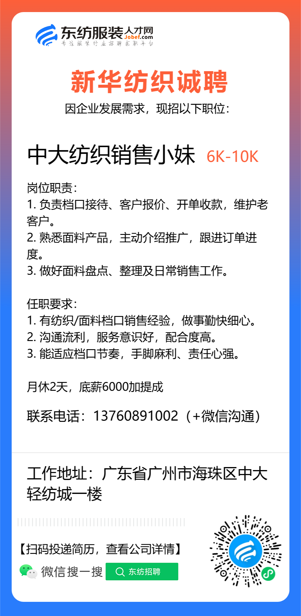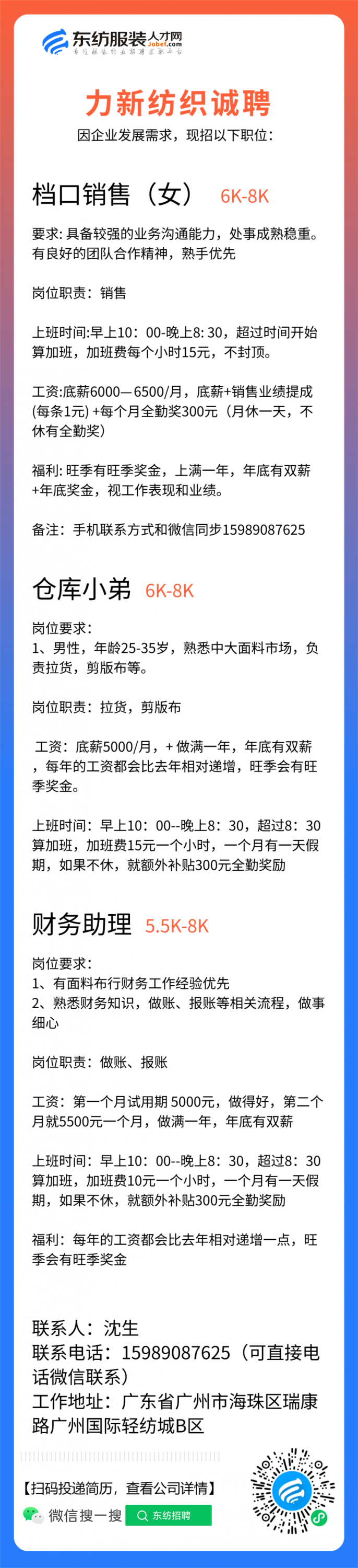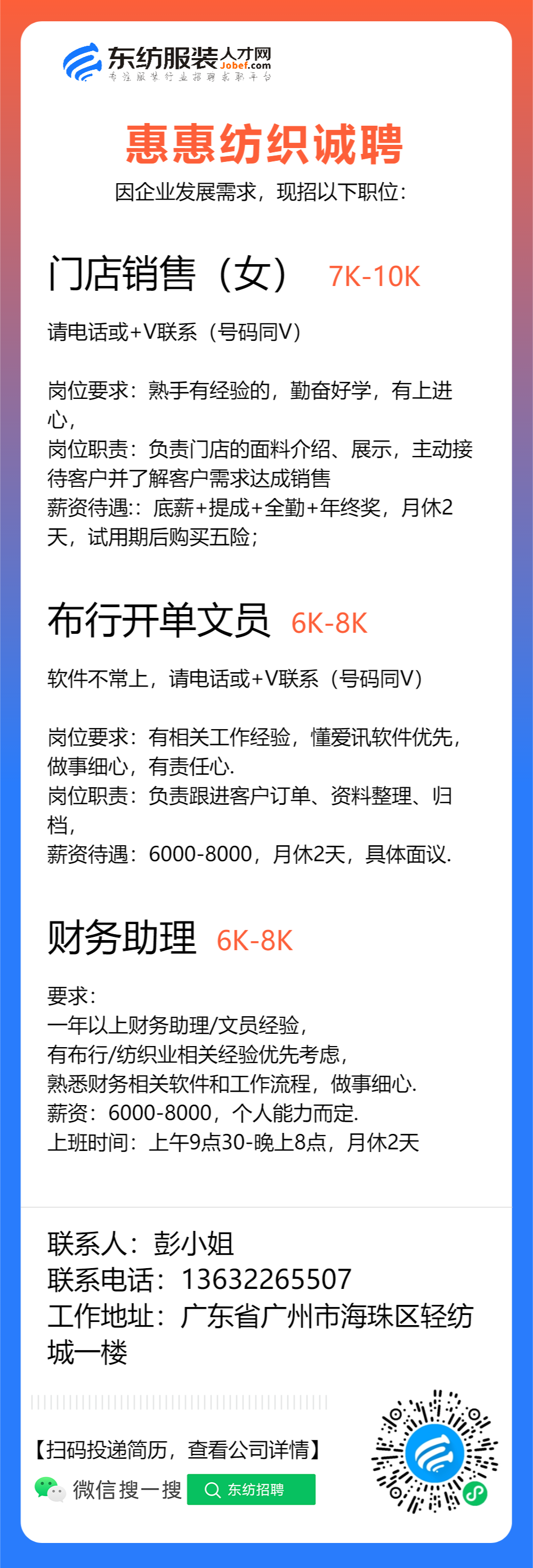 生产跟单/跟单文员/仓库文员/仓库专员/接待/前台/销售/业务员/销售助理/导购/营业员/营业员/销售员/开单文员/人事专员/库管员/收货/拿货专员/面料检验/验布员/面辅料研发/开发/普工