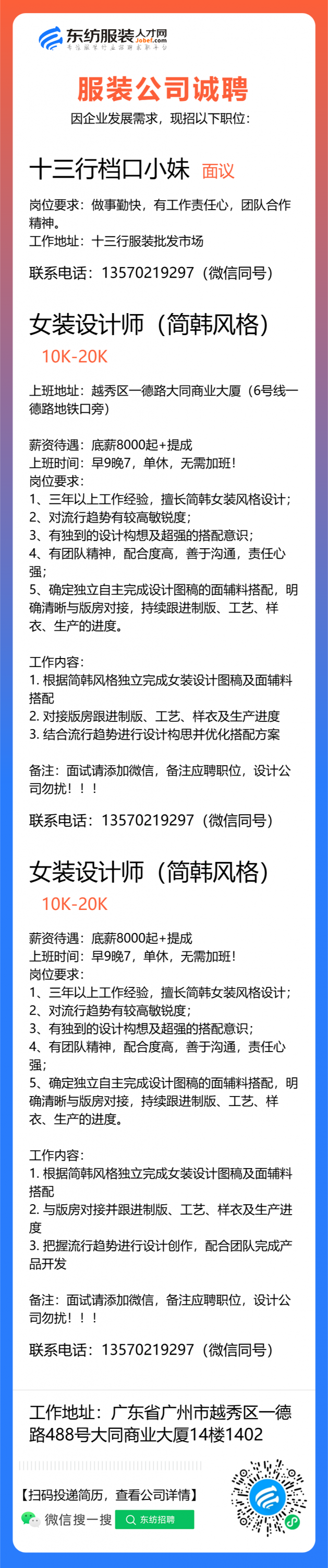 服装设计师/女装设计师/车版师/样衣工/跟单助理/销售/业务员/外贸跟单/采购助理/纸样师/打版师/QC质检/生产跟单/采购/采购主管/外贸业务员//电商运营/跟单文员/外贸销售跟单