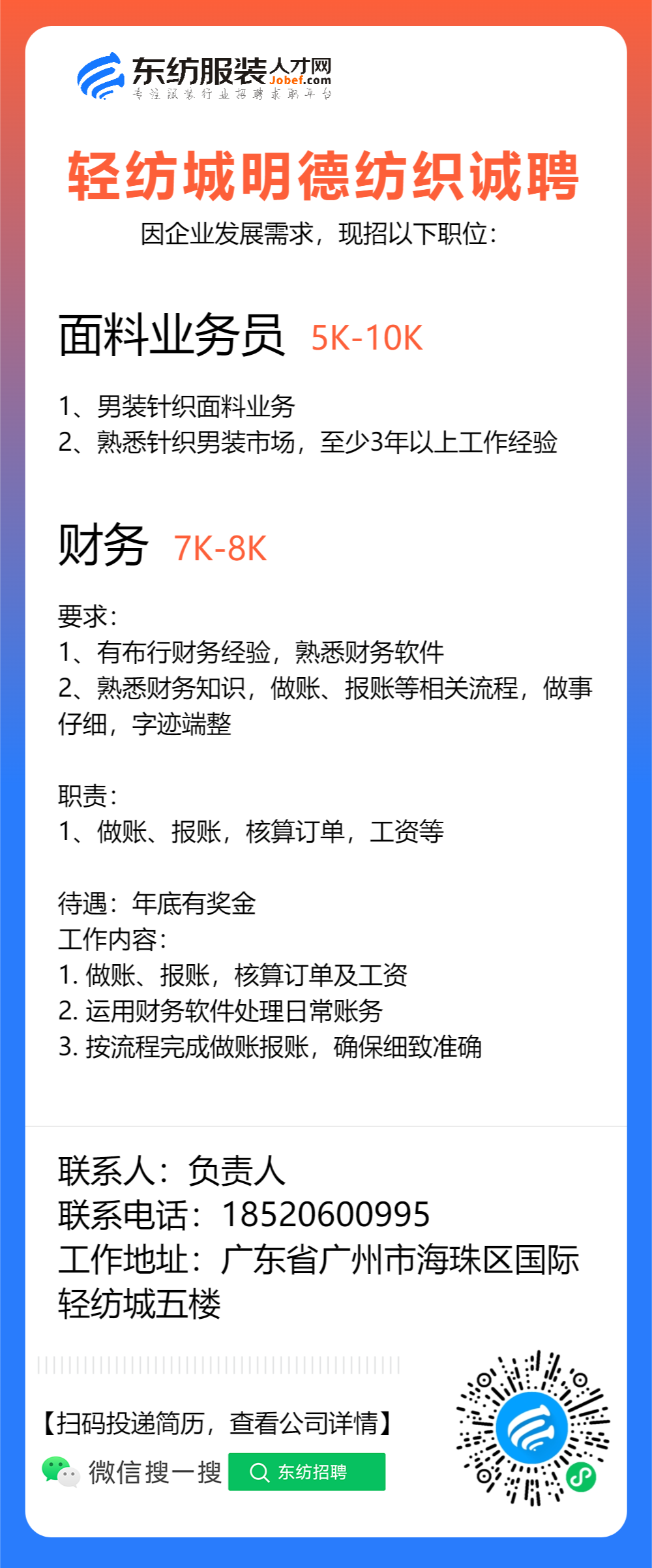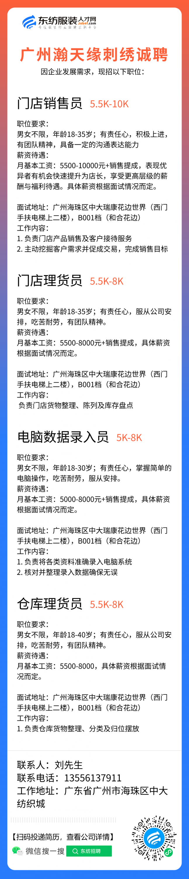 生产跟单/跟单文员/仓库文员/仓库专员/接待/前台/销售/业务员/销售助理/导购/营业员/营业员/销售员/开单文员/人事专员/库管员/收货/拿货专员/面料检验/验布员/面辅料研发/开发/普工