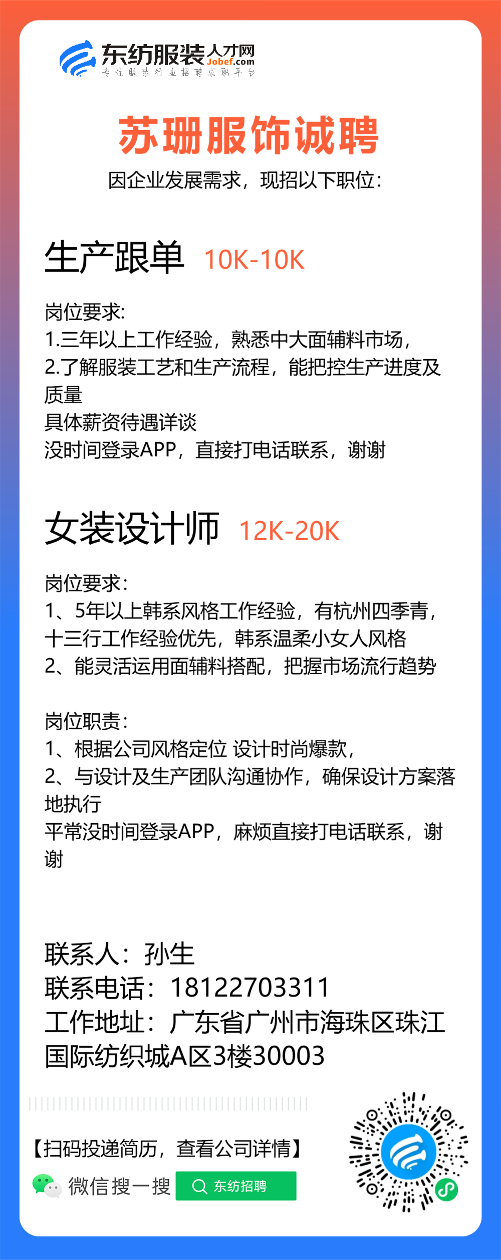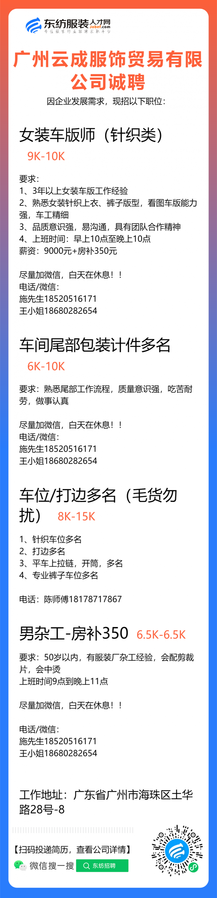 服装设计师/女装设计师/车版师/样衣工/跟单助理/销售/业务员/外贸跟单/采购助理/纸样师/打版师/QC质检/生产跟单/采购/采购主管/外贸业务员//电商运营/跟单文员/外贸销售跟单