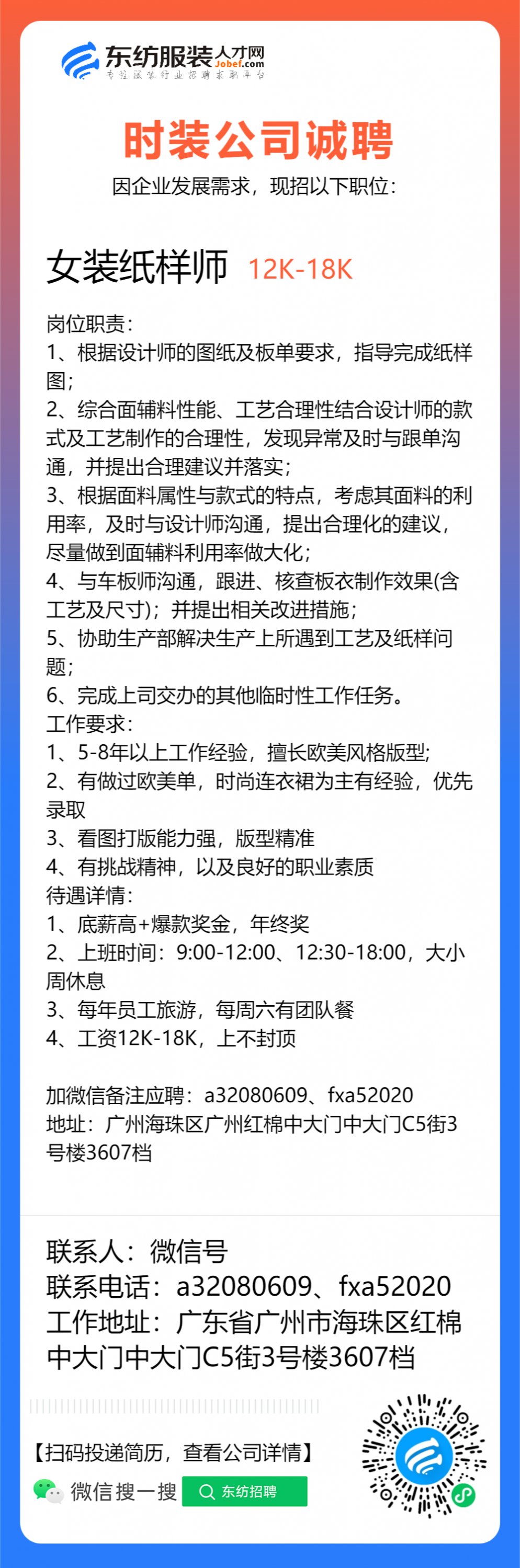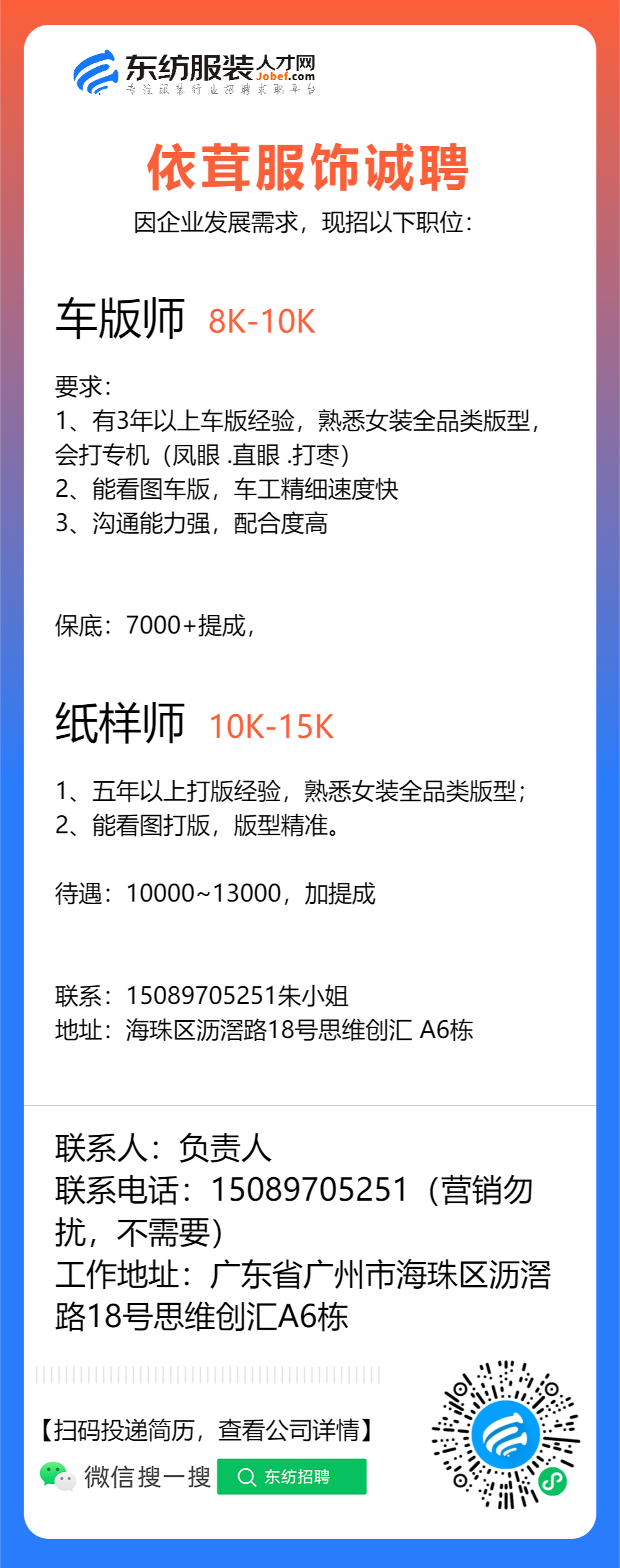 服装设计师/首席设计师/主设计师/设计总监/女装设计师/车版师/样衣工/车版衣/运营助理/电商运营/网络推广/纸样师/打版师/生产跟单/跟单助理