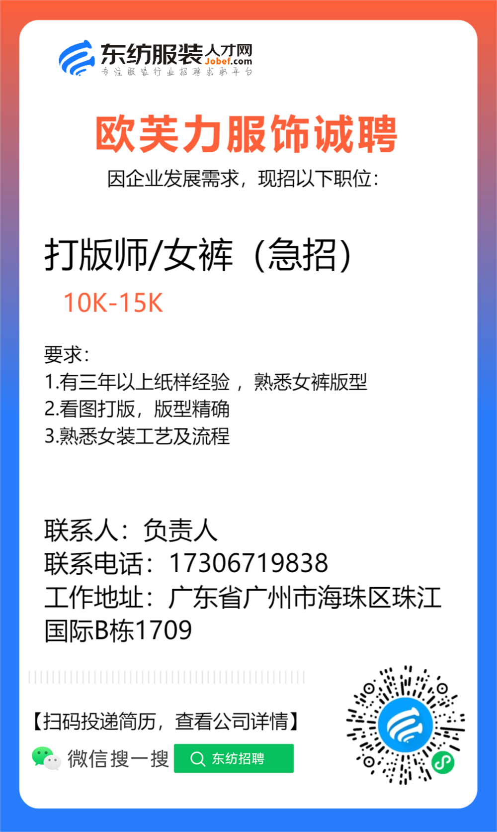 广州蒂佛尼服饰有限公司诚聘2026-04-18