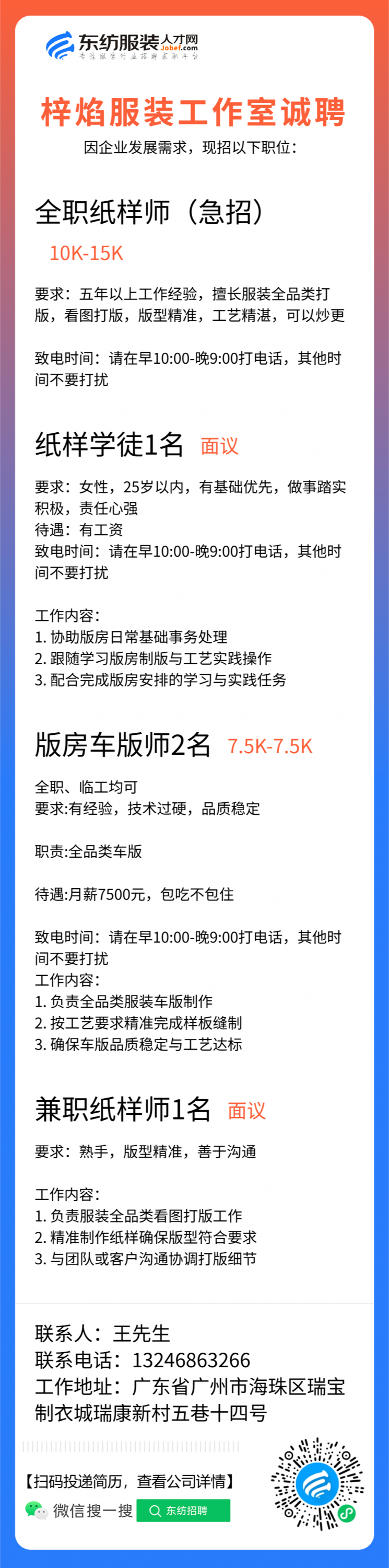 小类:纸样助理/学徒