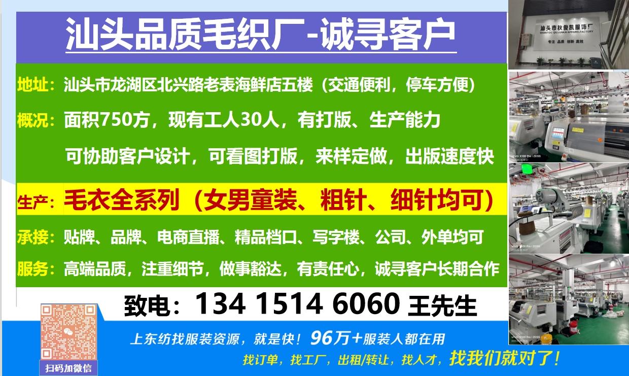汕头专业毛织工厂诚寻客户职位:工厂
