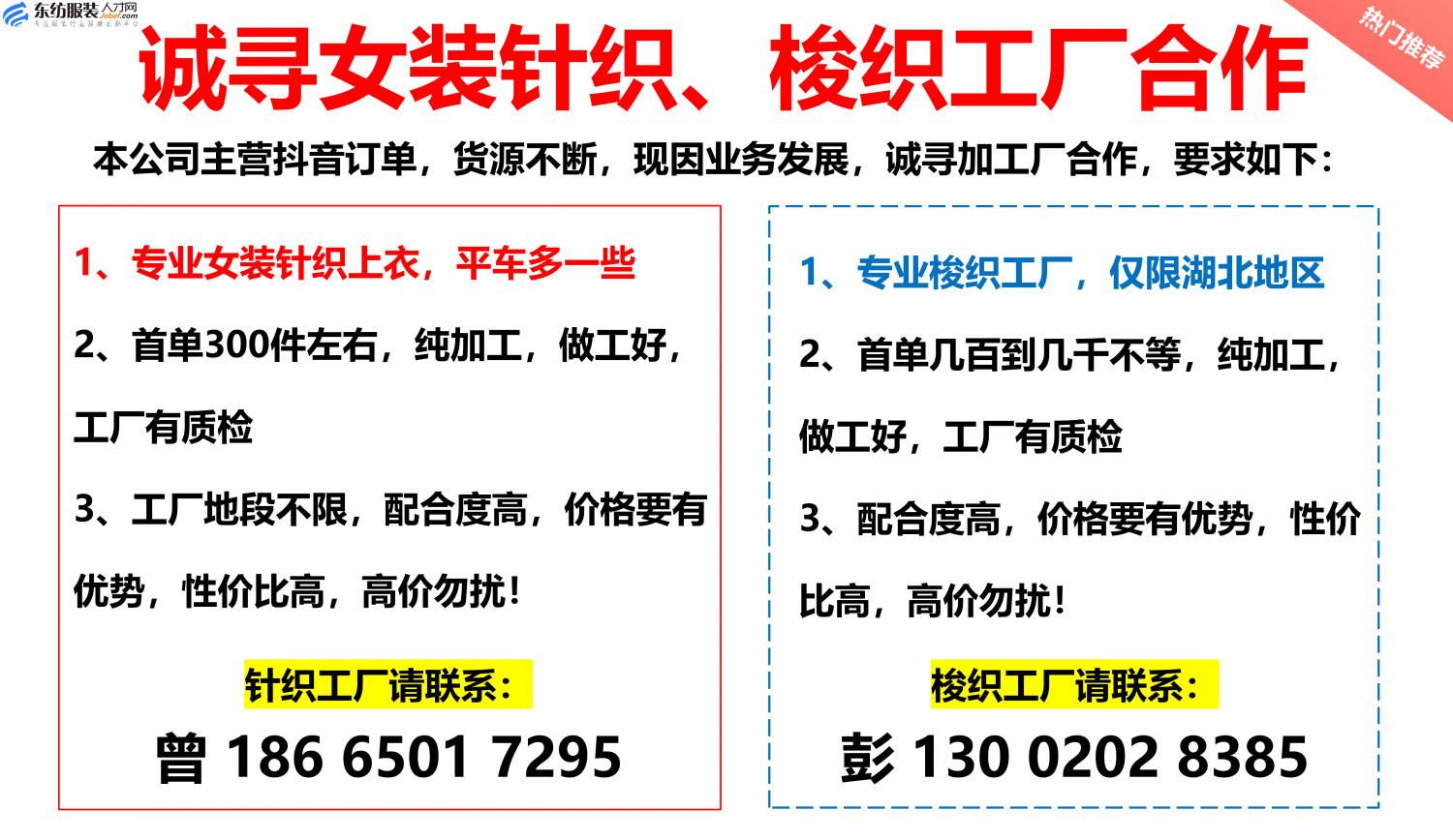 注:应聘或发邮件联系时,请注明该招聘信息来源于 东纺服装人才网www.jobef.com 谢谢!