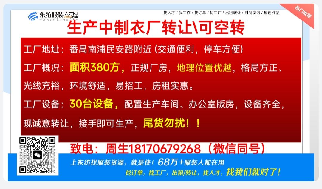 生产中制衣厂转让/可空转2026-04-20