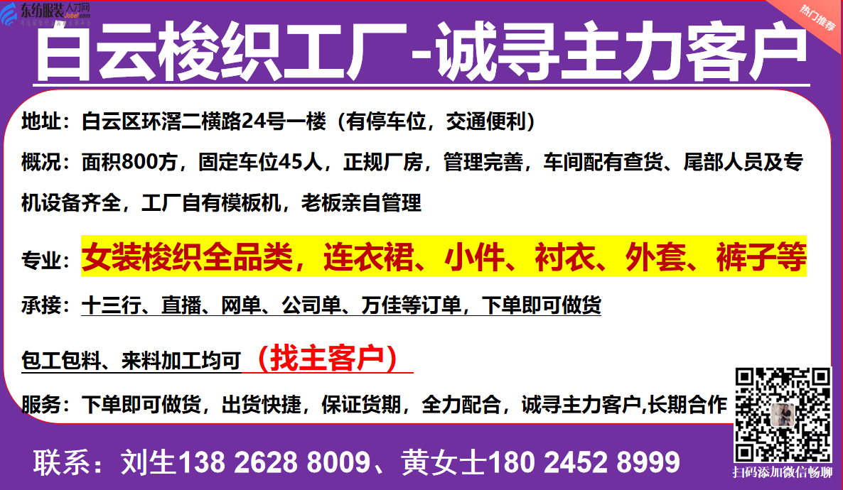 白云梭织工厂-诚寻主力客户职位:工厂