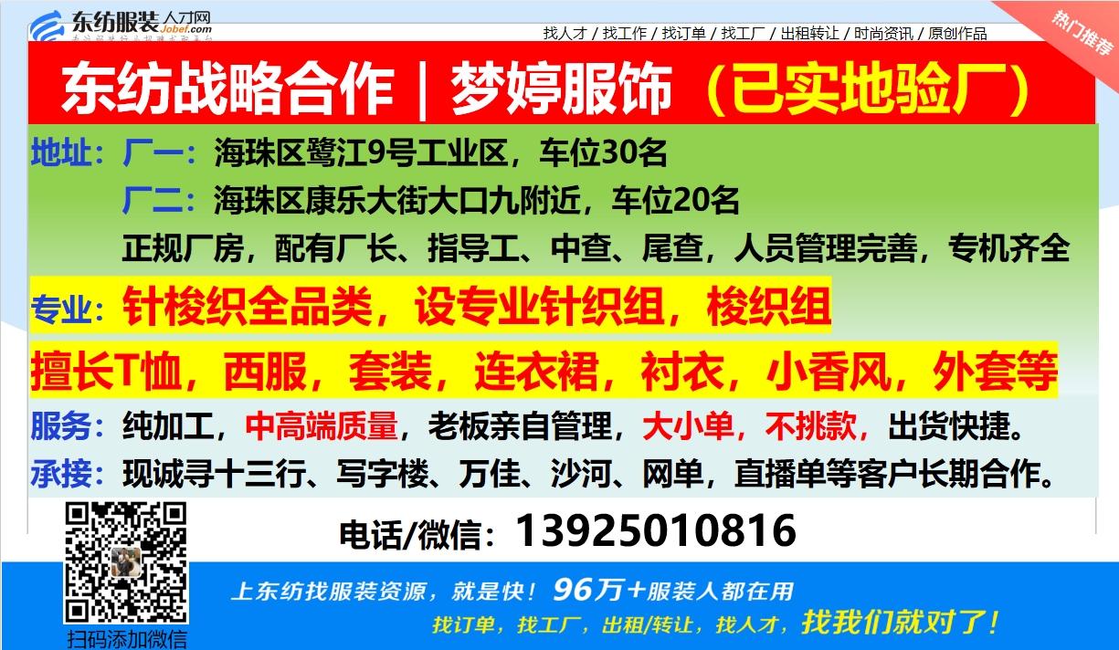 广州朵朵服饰-诚寻客户、鹭江工厂诚寻客户,梭织全品类
