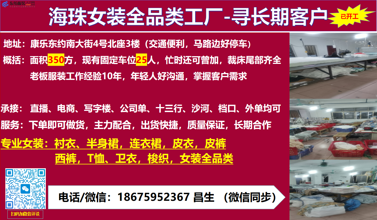 地址:东莞市大朗镇富华南路187号四楼(奕昌服饰有限公司)