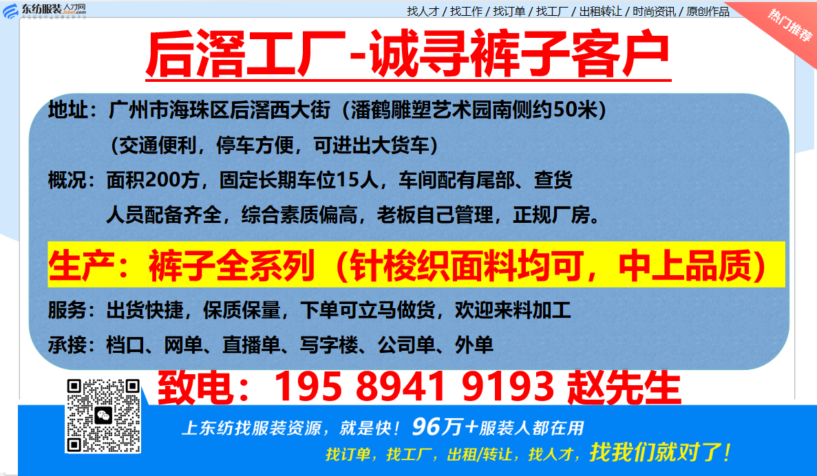地址:洋乌富升路104号三楼--鑫汪佳服饰