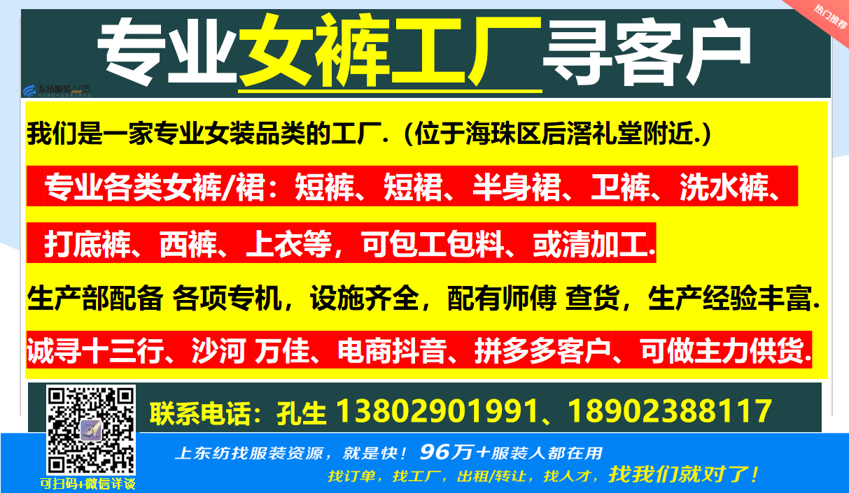 工厂/专业女裤工厂寻客户