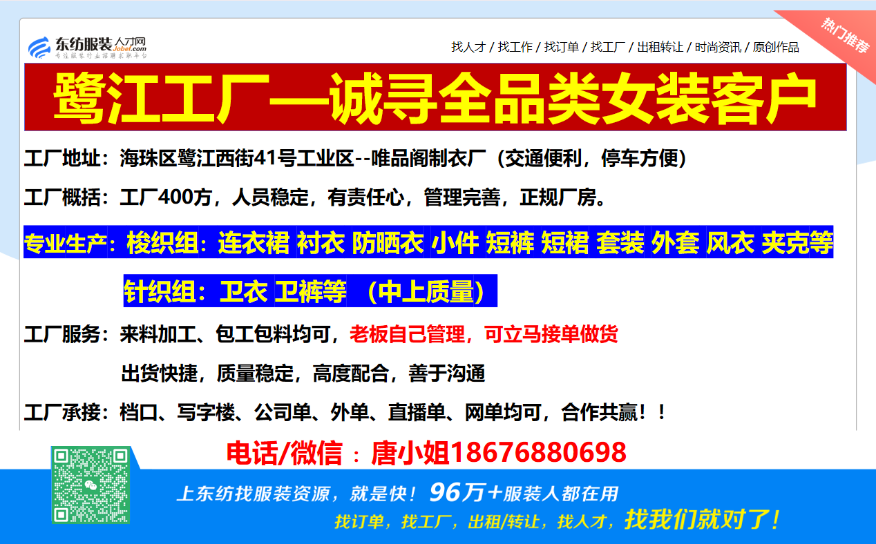 广州朵朵服饰-诚寻客户、鹭江工厂诚寻客户,梭织全品类