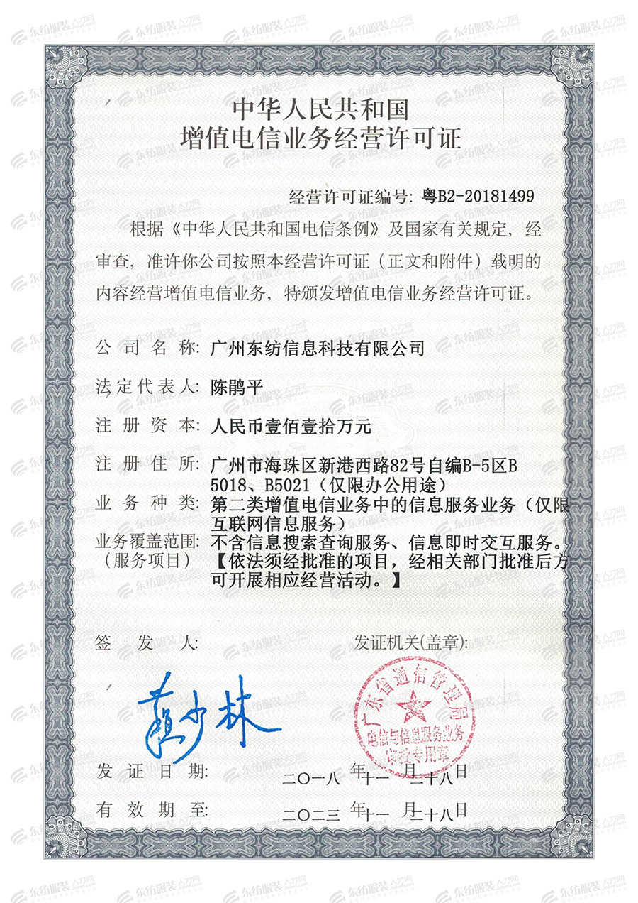 东纺增值电信业务经营许可证