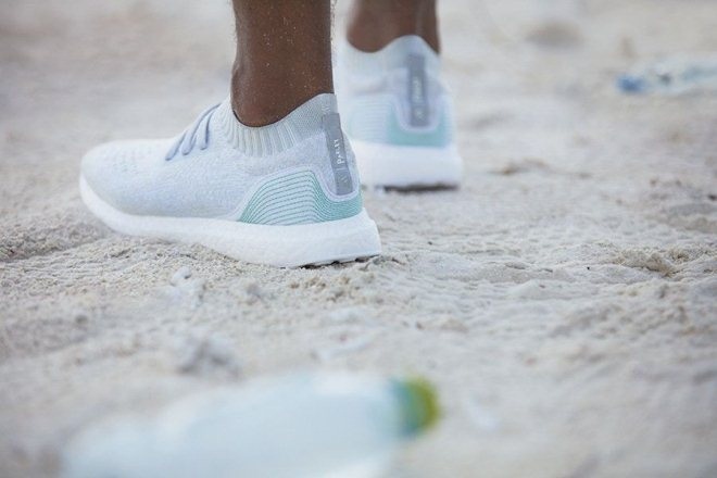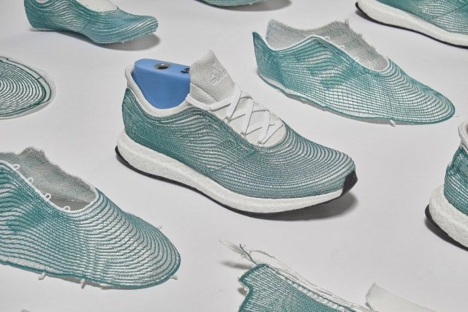 其实早在 2015 年,阿迪达斯就和海洋环保组织 Parley for the Oceans(简称 Parley)合作,推出了几乎完全由海洋塑料垃圾为原材料的环保概念鞋。