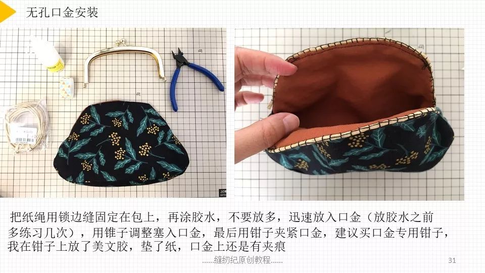 重点内容:制图、三片式口金缝制、无孔口金安装