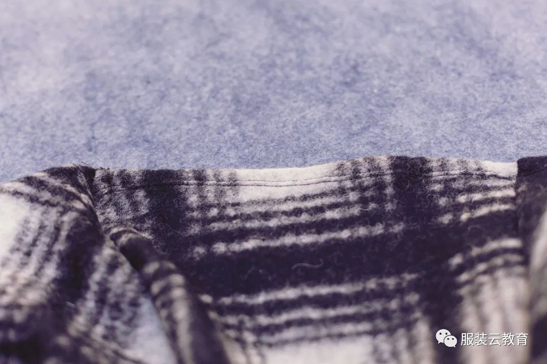 修边后,将下摆抬起,并用搭缝针进行不可见的缝制。